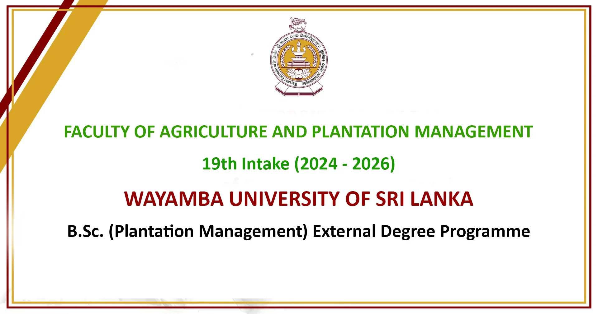 • Bachelor of Plantation Management (External) – 21st Intake