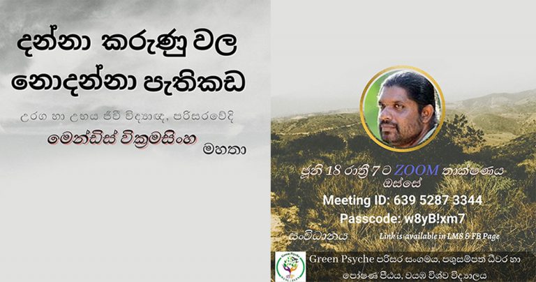 The “Green Psyche” Society of Faculty of Livestock, Fisheries and Nutrition (FLFN) in Wayamba University of Sri Lanka (WUSL) has organized a webinar on “The unknown aspects of what we know” on 18th June 2021 at 7.00 pm. Connect to the webinar via: https://learn.zoom.us/j/63952873344…For more info: https://flfn.wyb.ac.lk/?p=5125