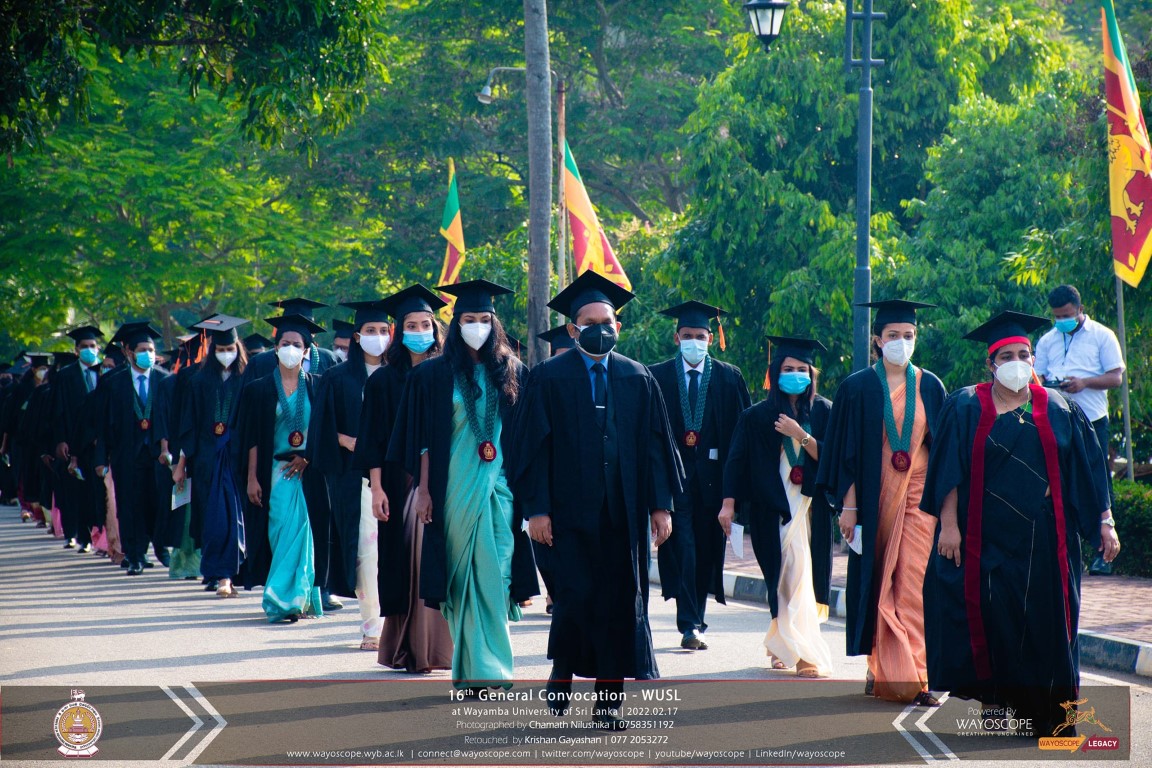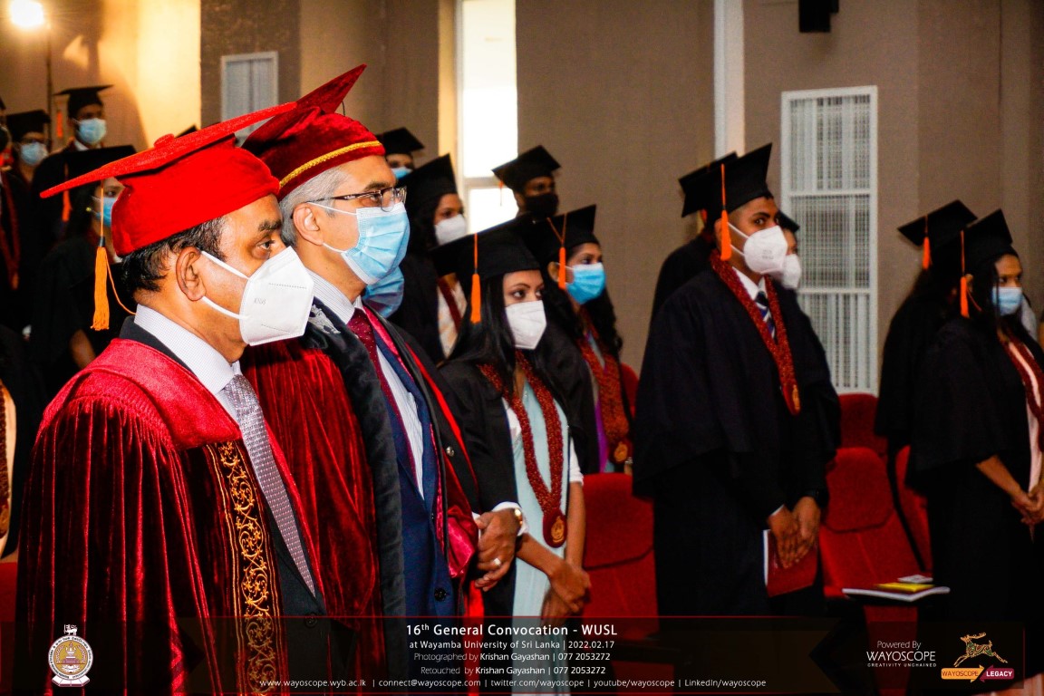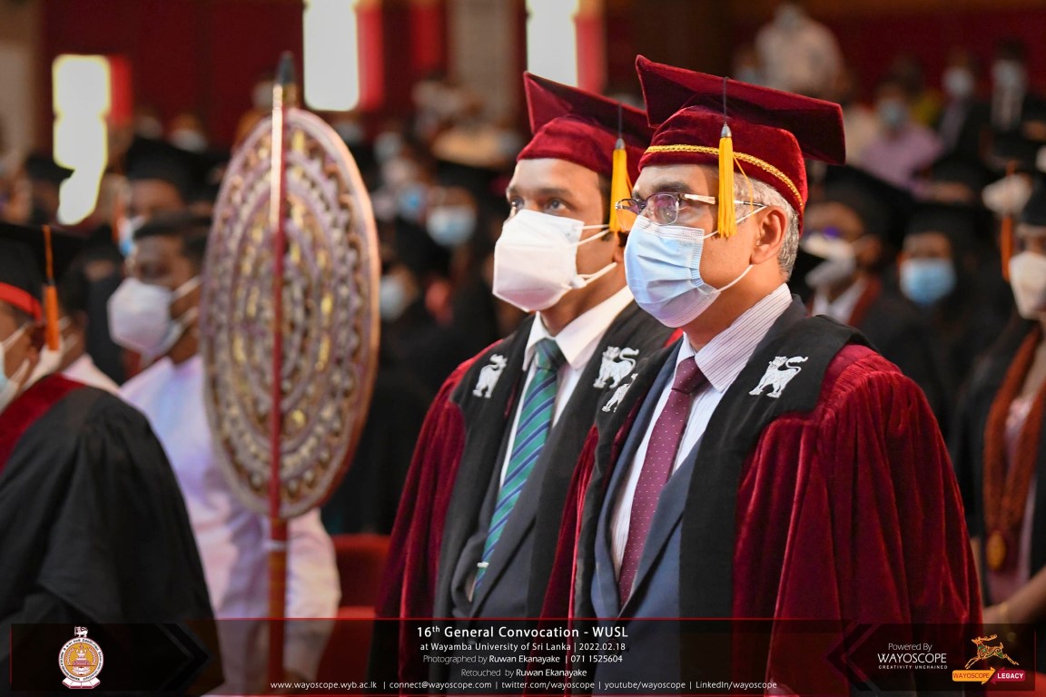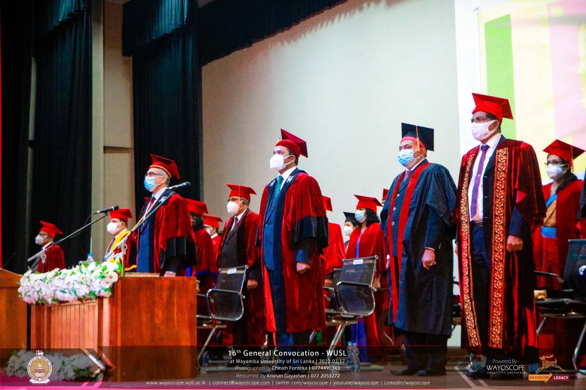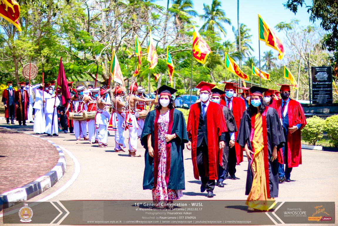 Wayamba University of Sri Lanka held the 16th General Convocation on 17th and 18th February, 2022 at the university’s Pandit Amaradewa auditorium. Undergraduate and postgraduate students who successfully completed their academic work were conferred with their respective degrees by the Vice-Chancellor (Actg), Dr. Sanjeewa Bowatte. The occasion was graced by the Deans of all Faculties, Professors, other academic staff members, Registrar, Bursar, Librarian and non-academic staff.