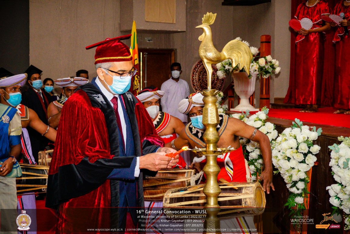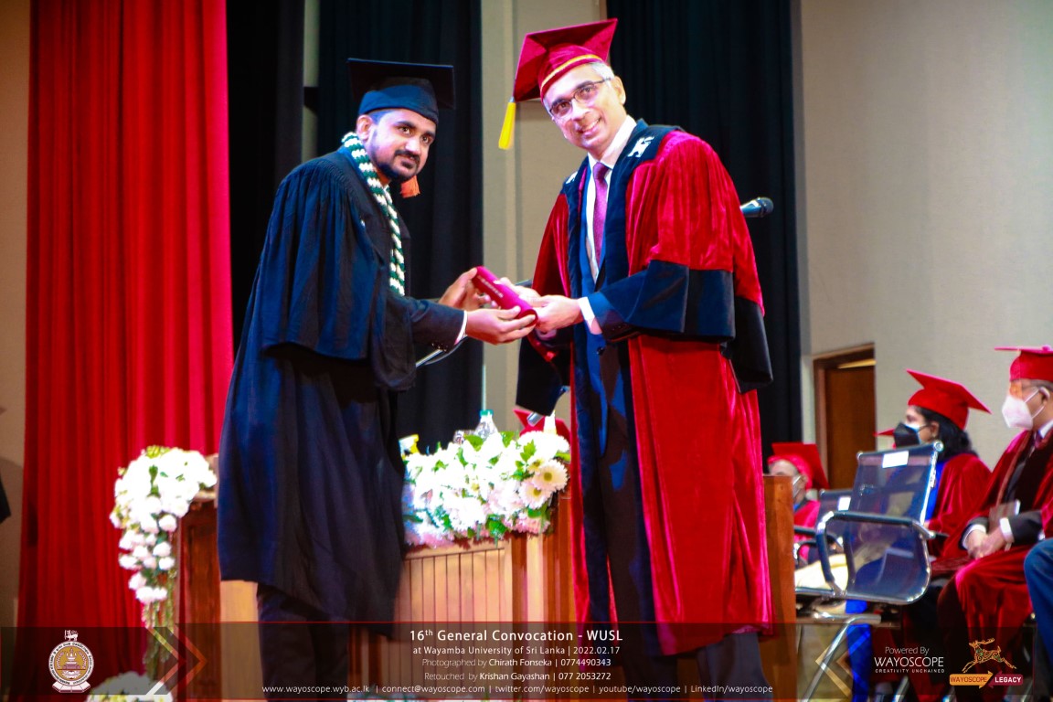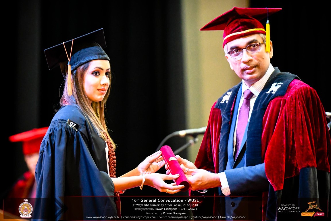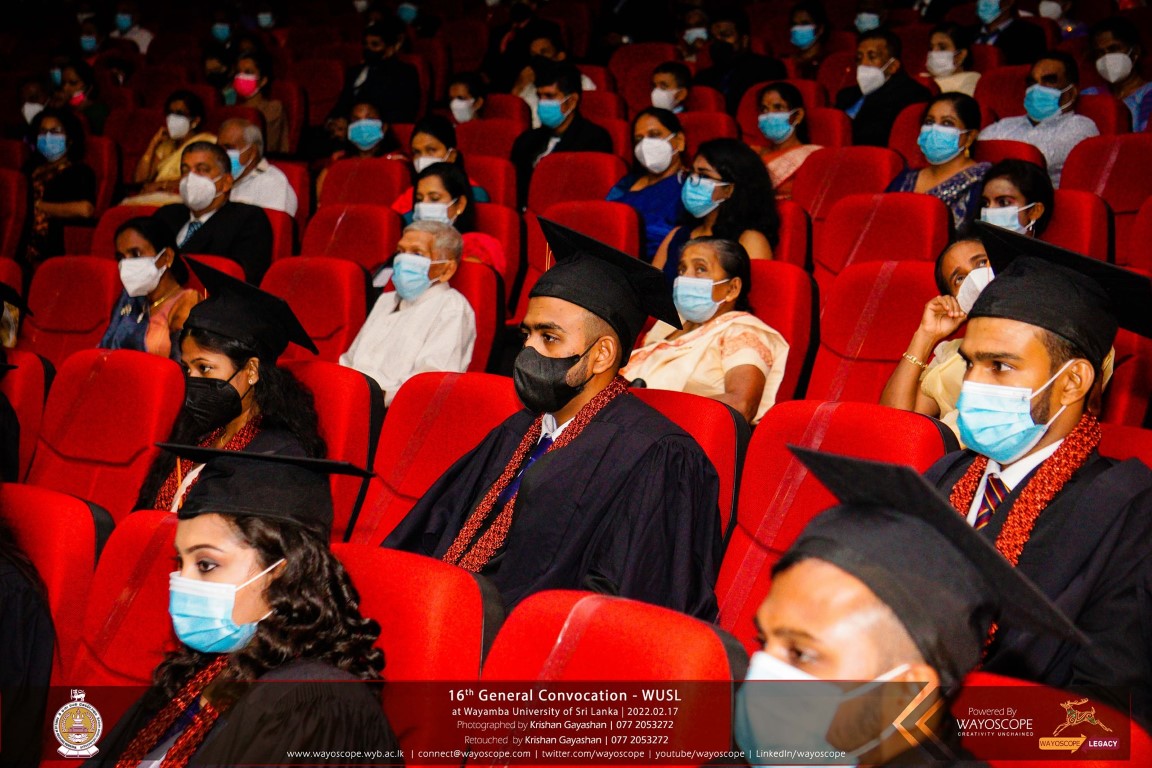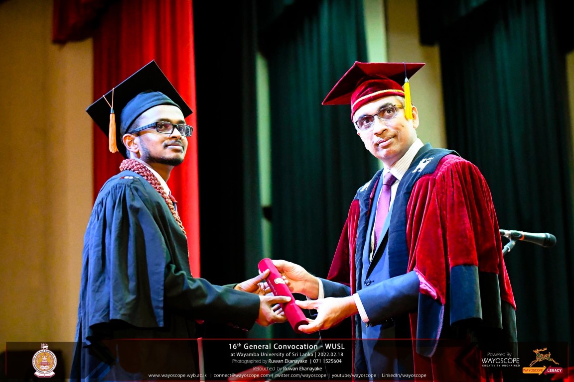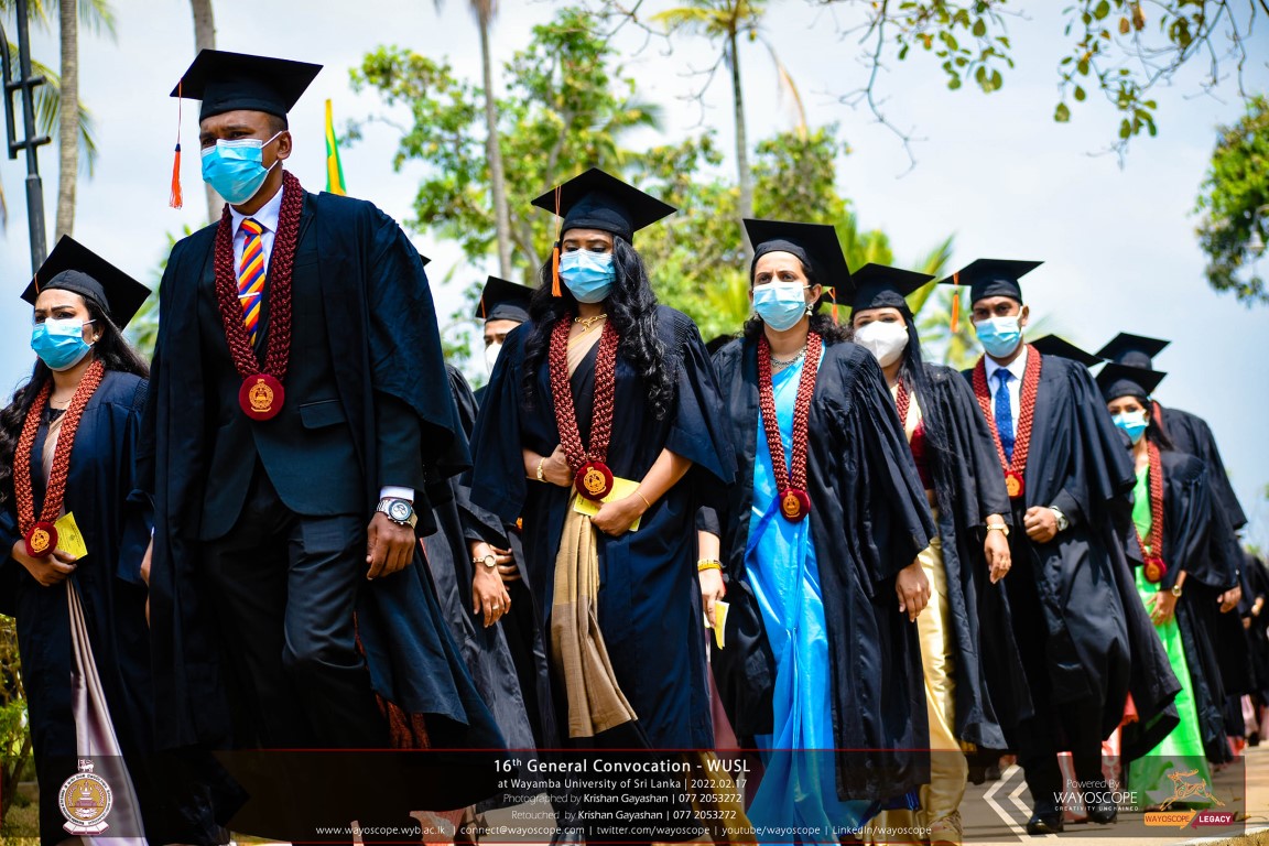 Wayamba University of Sri Lanka held the 16th General Convocation on 17th and 18th February, 2022 at the university’s Pandit Amaradewa auditorium. Undergraduate and postgraduate students who successfully completed their academic work were conferred with their respective degrees by the Vice-Chancellor (Actg), Dr. Sanjeewa Bowatte. The occasion was graced by the Deans of all Faculties, Professors, other academic staff members, Registrar, Bursar, Librarian and non-academic staff.