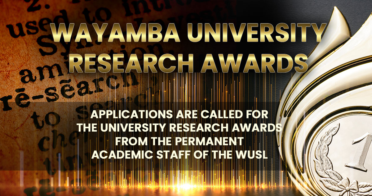 Applications are called for the University Research Awards from the permanent academic staff of the WUSL Applications are called for the University Research Awards from the permanent academic staff of the WUSL. Wayamba University Most Outstanding Researcher Award-2020 Wayamba University Most Outstanding Young Researcher Award-2020 Awards Read More » October 4, 2021