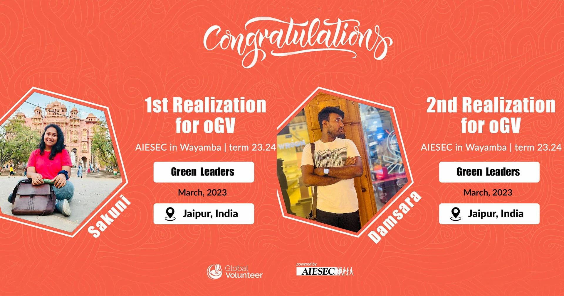 Congratulations Sakuni and Damasara Been Selected from AIESEC in Wayamba to the “Green Leaders” Climate Action Project at Jaipur, India Ms. Sakuni Yasminda and Mr. Damsara Embuldeniya from AIESEC in Wayamba University of Sri Lanka (WUSL) (branch of AIESEC Sri Lanka), two undergraduates of Faculty of Agriculture and Plantation Management got Read More » March 15, 2023