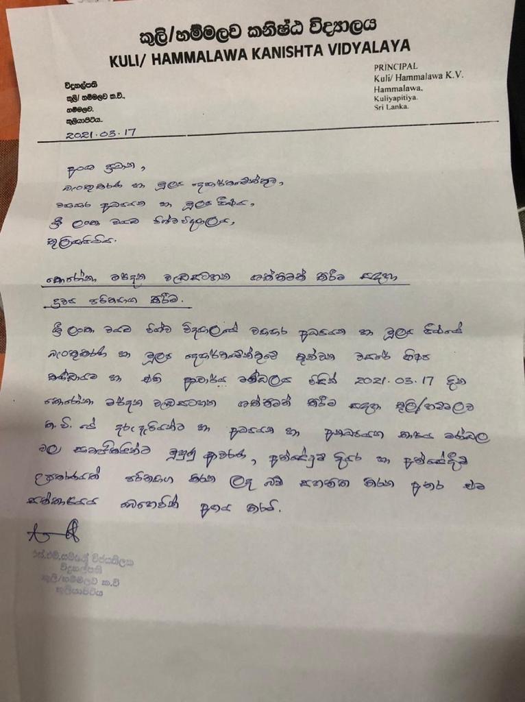 A CSR project was successfully conducted by the students and staff members of the Department of Banking & Finance of the Faculty of Business Studies and Finance (FBSF) in Wayamba University of Sri Lanka (WUSL) to provide Health Care Equipment and Material for Hammalawa Primary school children at Kuliyapitiya to strengthen the prevention of spreading COVID-19, on 17th February 2021.