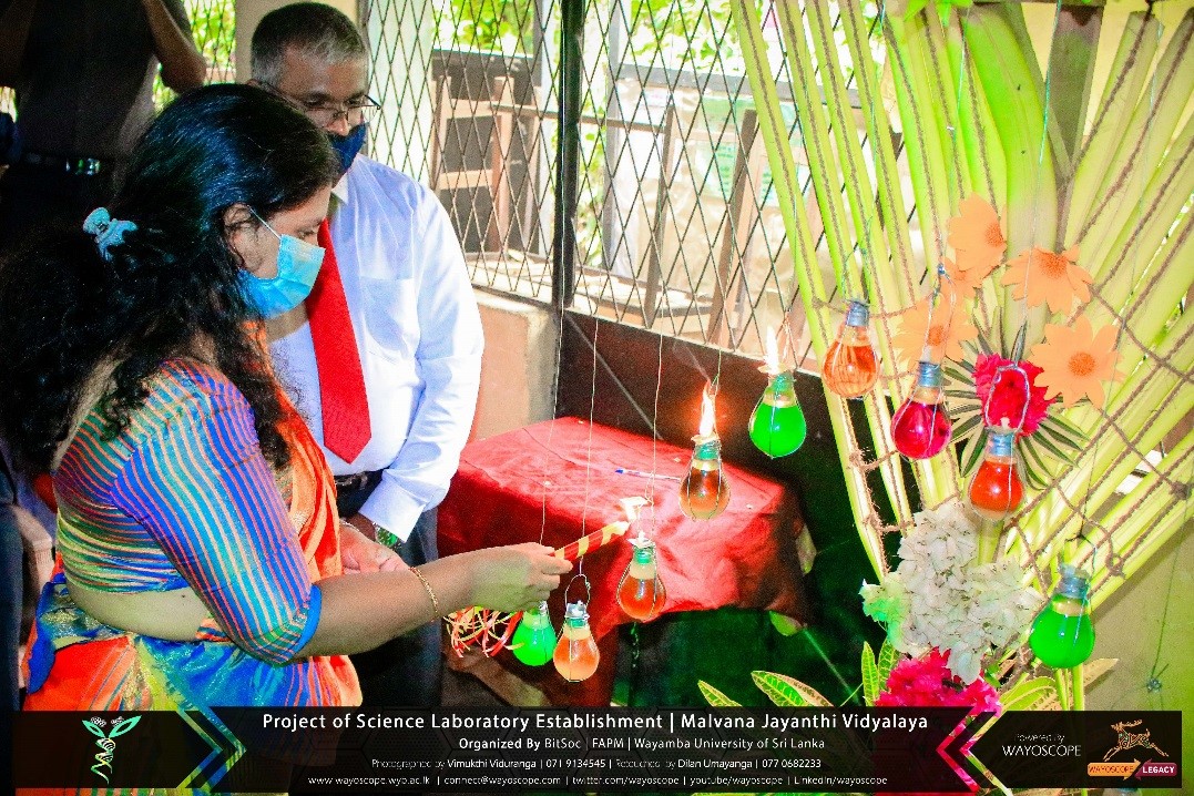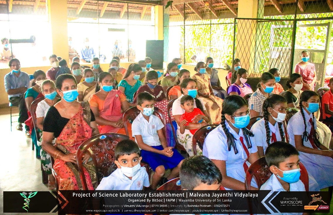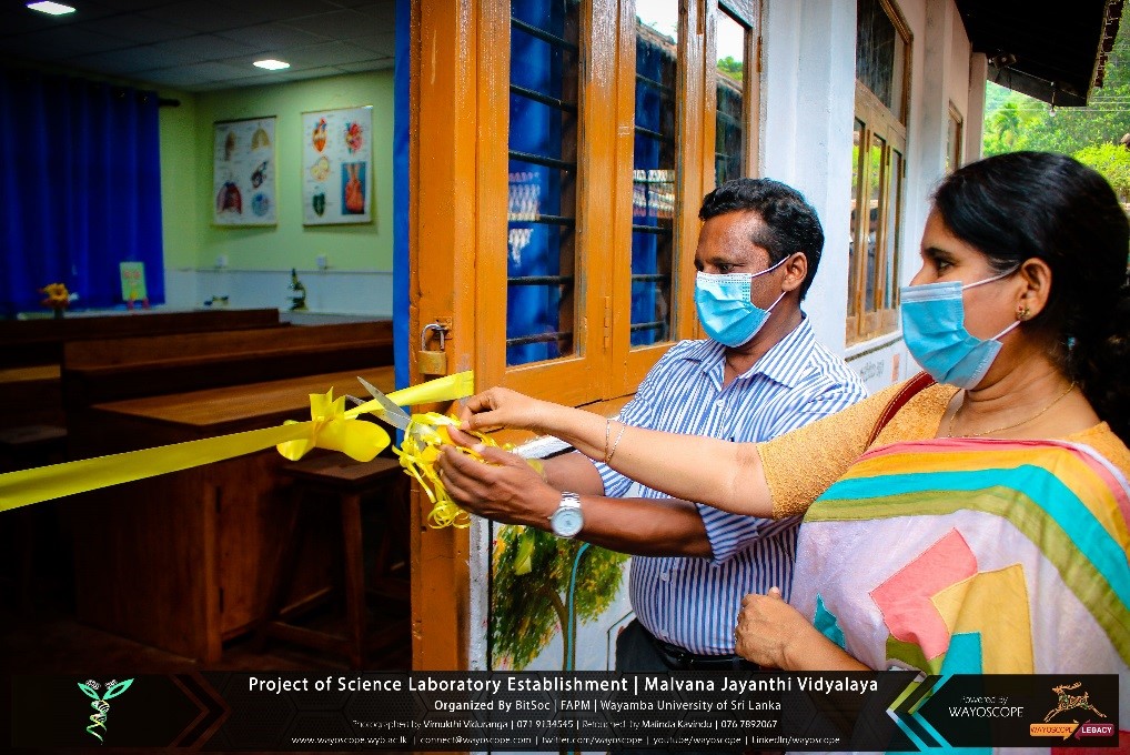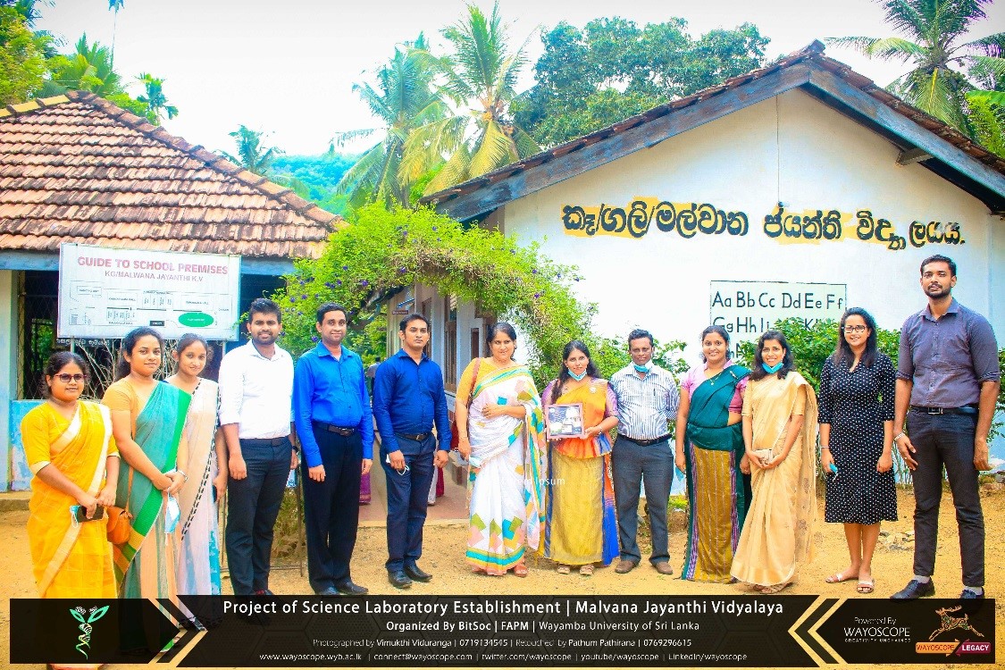 The academic and non-academic staff members of the Department of Biotechnology together with members of Biotechnology Society (BitSoc) of the Faculty of Agriculture and Plantation Management (FAPM) in Wayamba University of Sri Lanka (WUSL) stepped forward extending their generous support in terms of financial and technical assistance for the construction of new science laboratory to the school in the remote area of Kegalle District, Malwana Jayanthi Vidyalaya, Malwana, Pothukoladeniya, Kegalle with the aim of uplifting science education in the school community. This Newly built laboratory was ceremonially opened on 25th March 2021 with the participation of the Faculty staff members. The school principal, teachers, students and parents were greatly thankful for helping to make students’ dream a success.