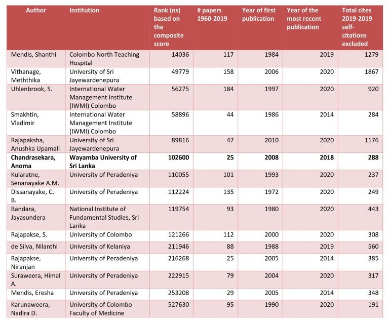 Sri Lankan scientists in the world  top 2% considering scientists for the year 2019