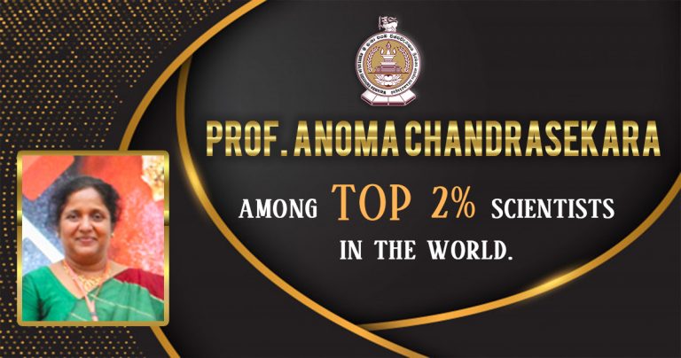 Prof Anoma Chandrasekara from Wayamba University of Sri Lanka has been ranked among the top 2% scientists of the world for the year 2019 in a recent paper from Stanford University published in the journal of PLoS Biology.