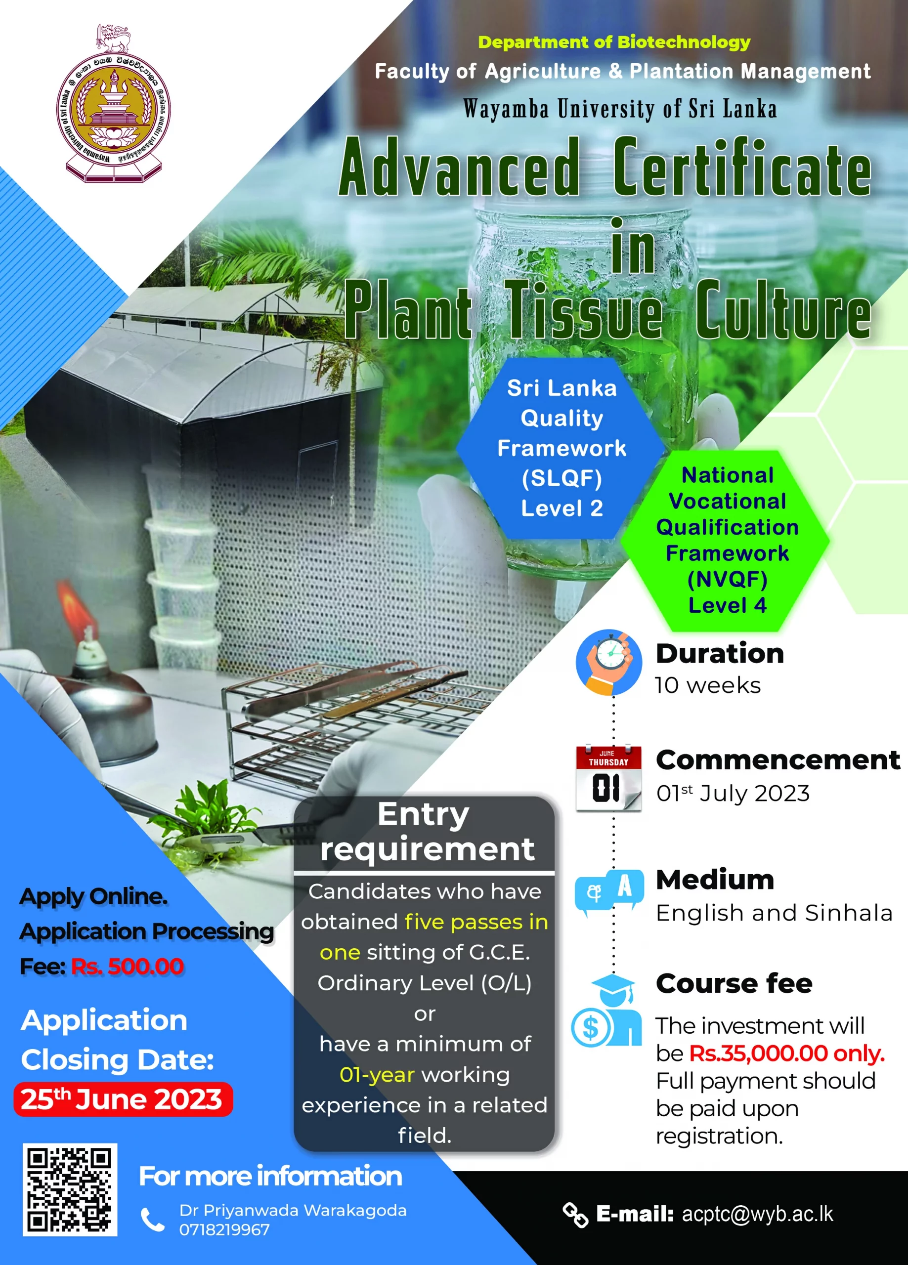 Plant tissue culture is a set of techniques that can be applied in various fields, including basic research, germplasm conservation, and commercial applications such as micropropagation, crop improvement, and secondary metabolite production. This short course on plant tissue culture provides hands-on training and an understanding on laboratory practices and transfers from the lab to the field. This course is suitable for school teachers, technical college instructors, entrepreneurs looking to establish their labs, and researchers in plant tissue culture focusing on commercial applications. The plant tissue culture sector has great potential to become a widespread income-generating business, providing more job opportunities to the community.