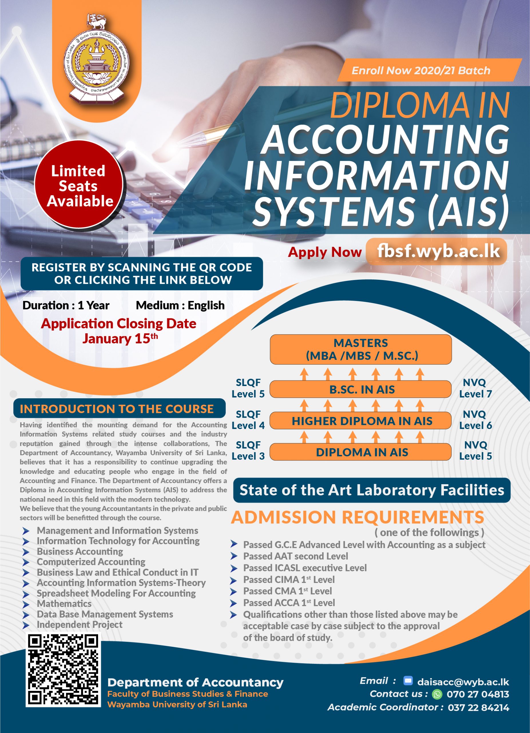 Applications are invited for Diploma in Accounting Information Systems: 2020/21