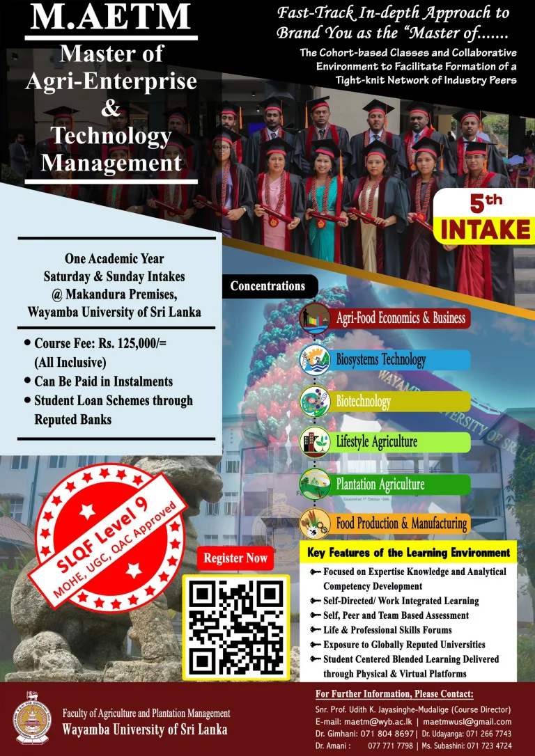 Calling Applications for the 5th intake of Master of Agri-Enterprise & Technology Management