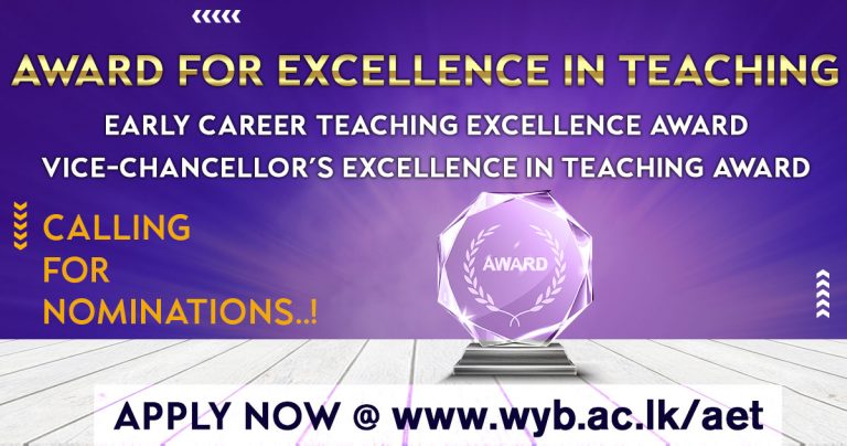 The Wayamba University of Sri Lanka invites applications for the Award for Excellence in Teaching from the permanent Academic staff of the WUSL under two categories.