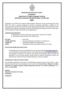 DIPLOMA IN ENGLISH FOR EMPLOYMENT- INTAKE (16) 2023