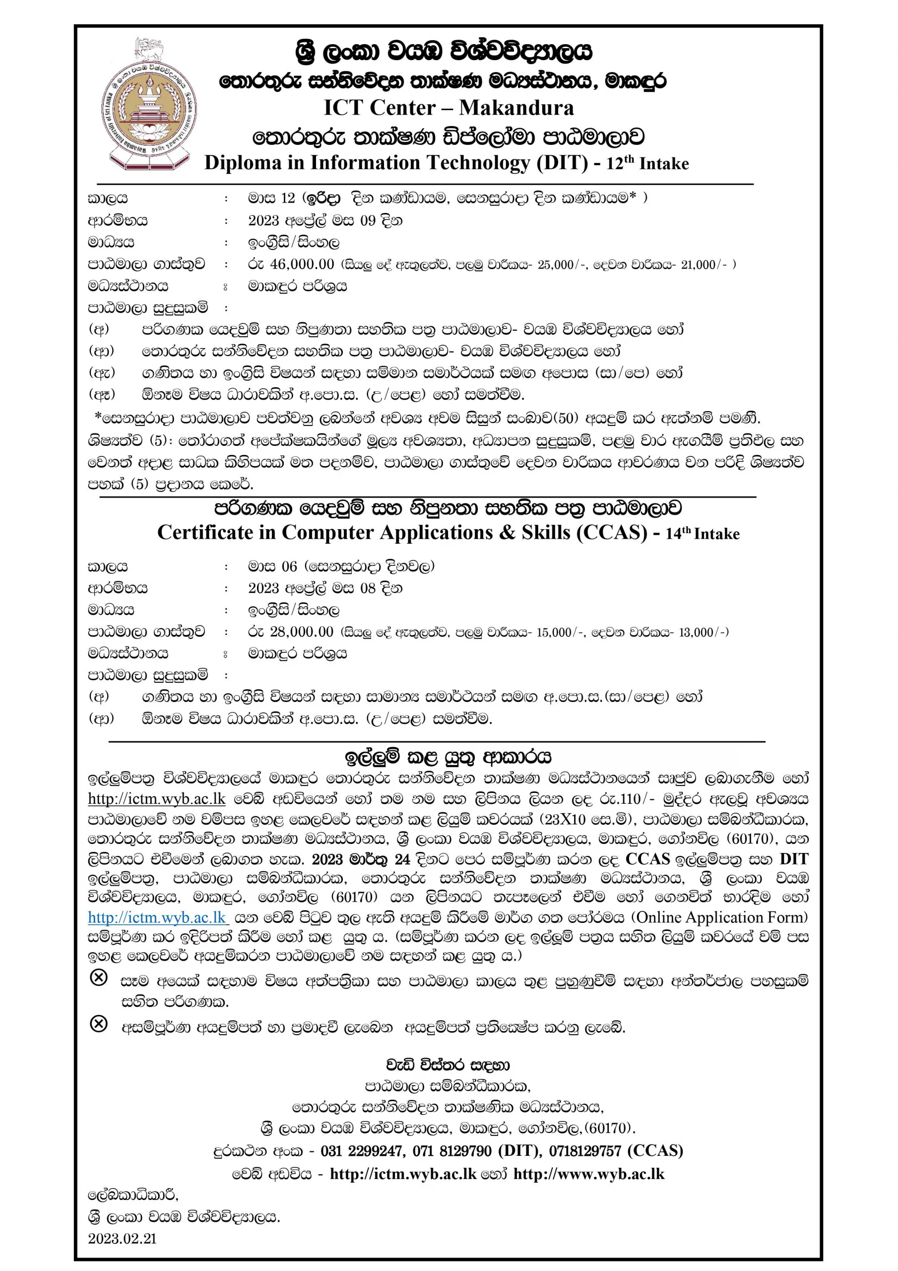 Diploma in Information Technology – Makandura