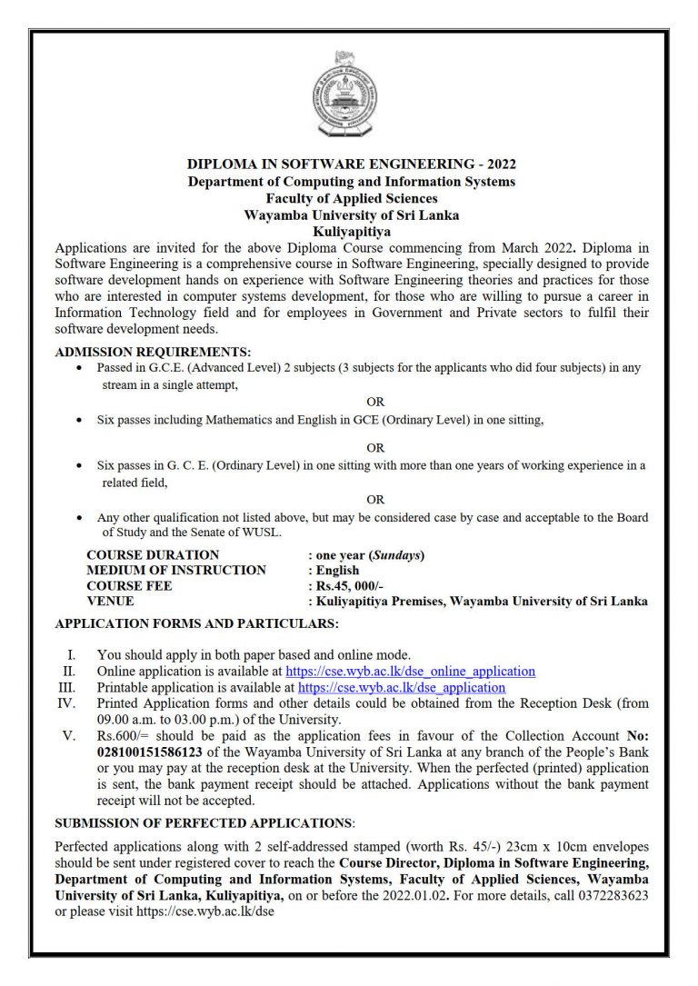 Post of Academic Warden (Kuliyapitiya, Labuyaya & Makndura)