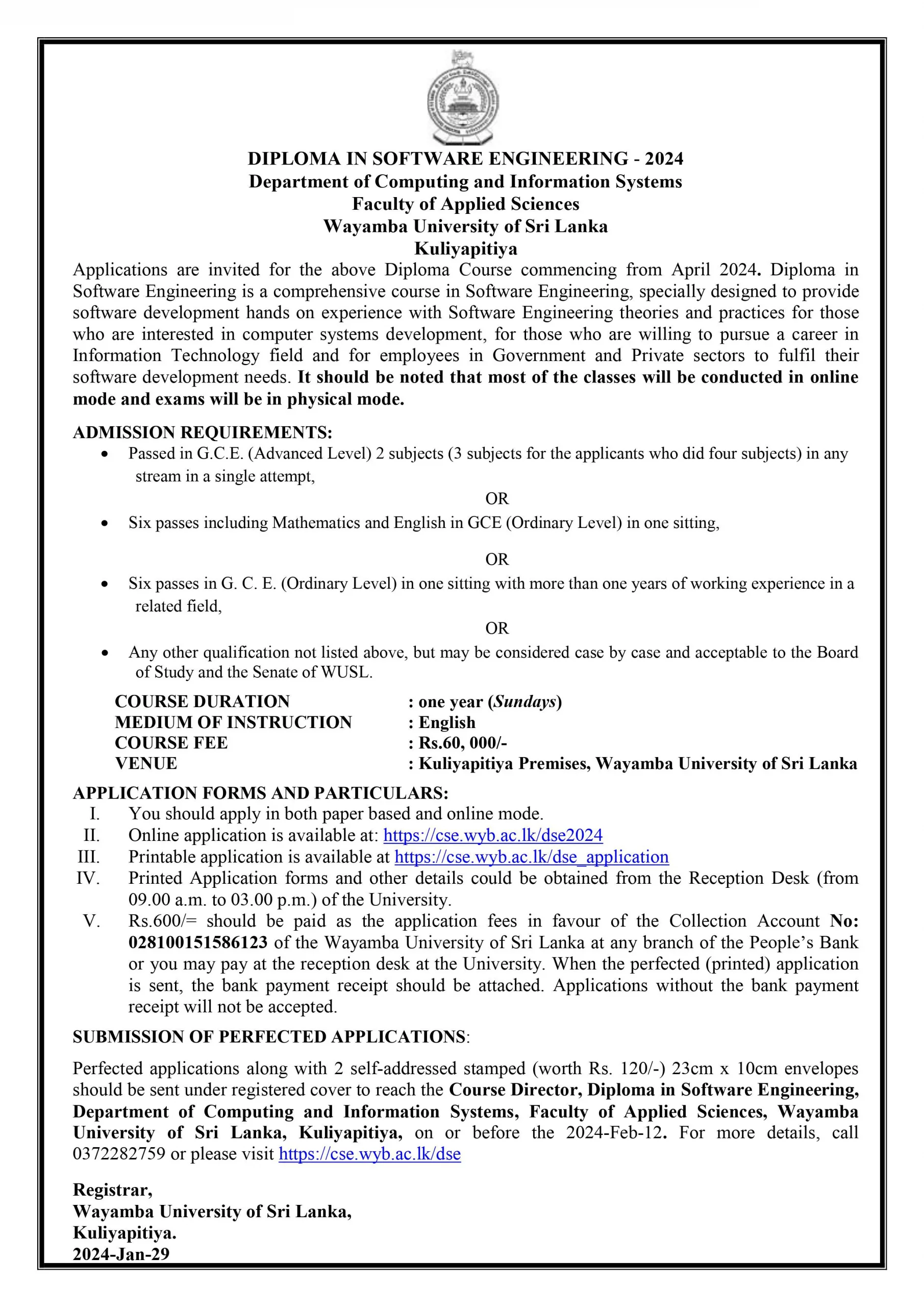 Post of Senior Student Counsellor – Kuliyapitiya & Makandura Premises for 2026