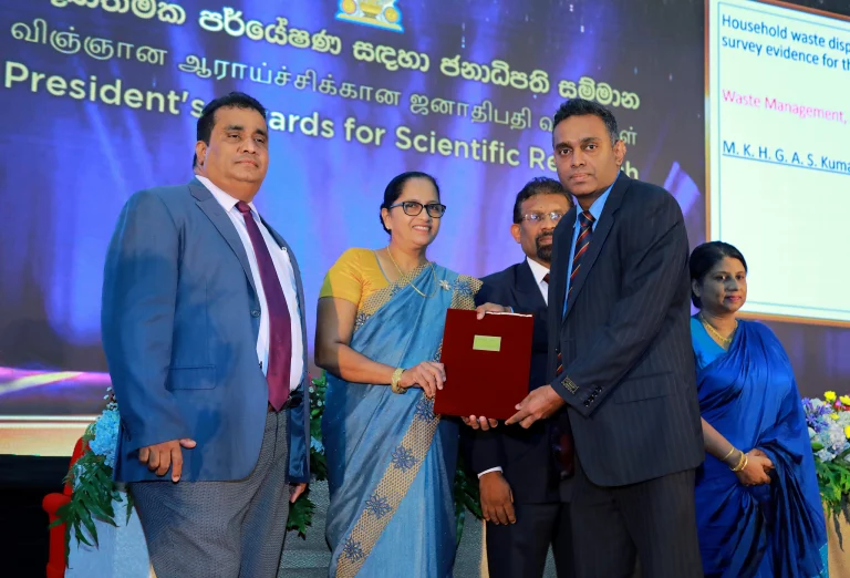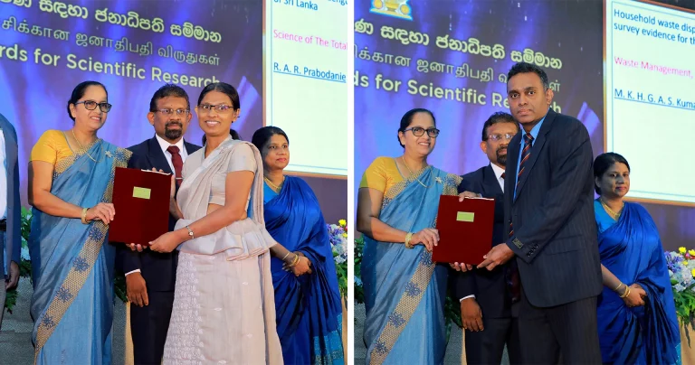 Dr. Asankha Pallegedara and Prof. Ranga Prabodanie, both in the Department of Industrial Management, have won Presidential Awards for Scientific Research for the year 2020. The award ceremony was held at the BMICH on 21st November 2023.