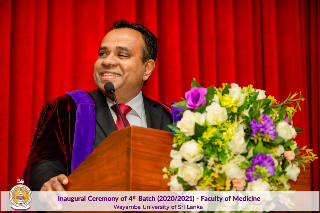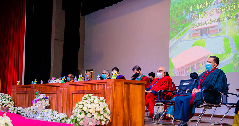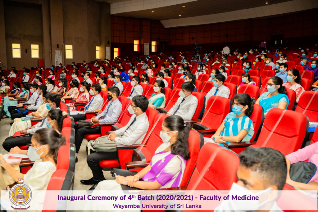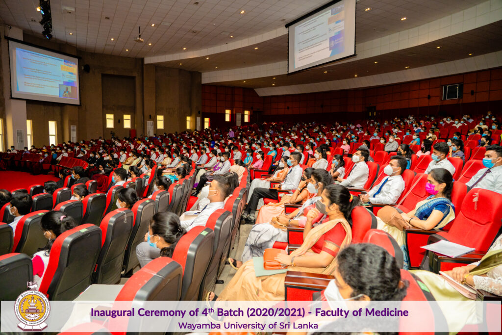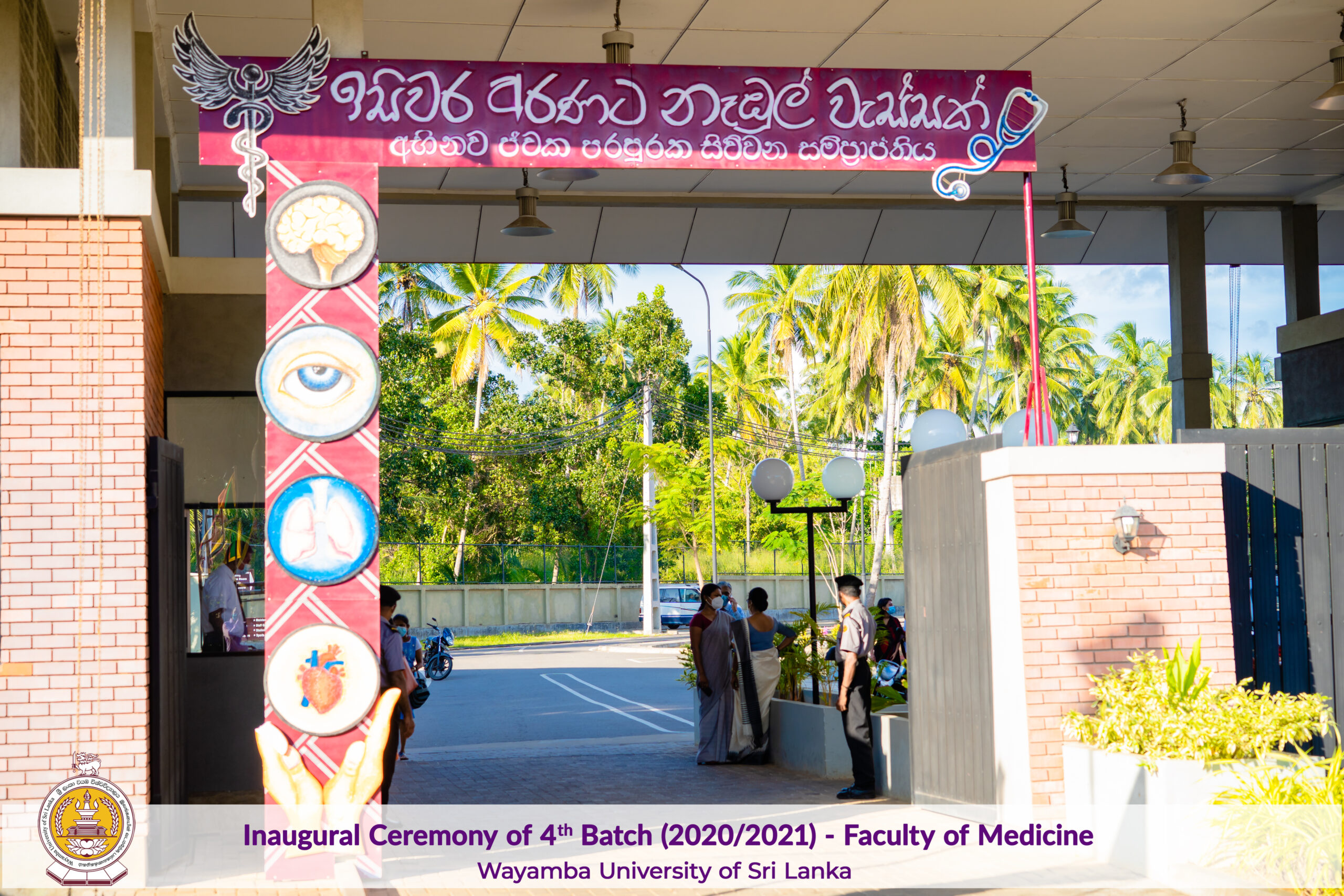 The new intake of medical students from GCE A/L 2020 were ceremonially inaugurated on the 6th of January 2022. The ceremony was graced by Dr. P.G.C.S. Bowatte, acting Vice-chancellor of Wayamba University of Sri Lanka and Dean of the Faculty of Medicine and Chief Guest Vidya Jyothi Prof. Vajira H. W. Dissanayake, President of Sri Lanka Medical Council, with the participation of Deans of the Faculties of the university, Registrar of the University, Academic Staff, Senior Assistant Registrar, new students and their parents.