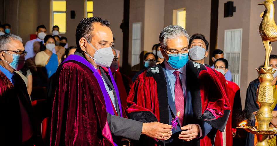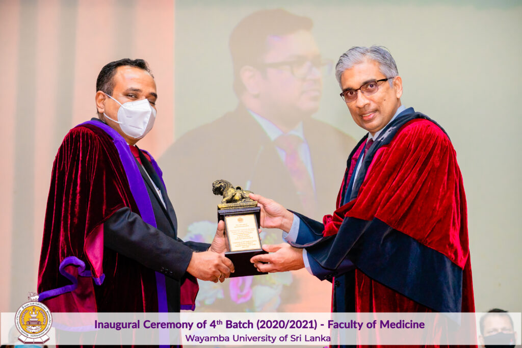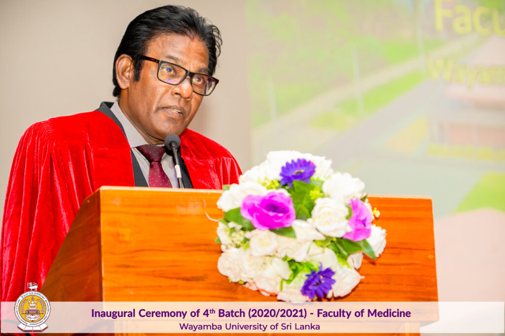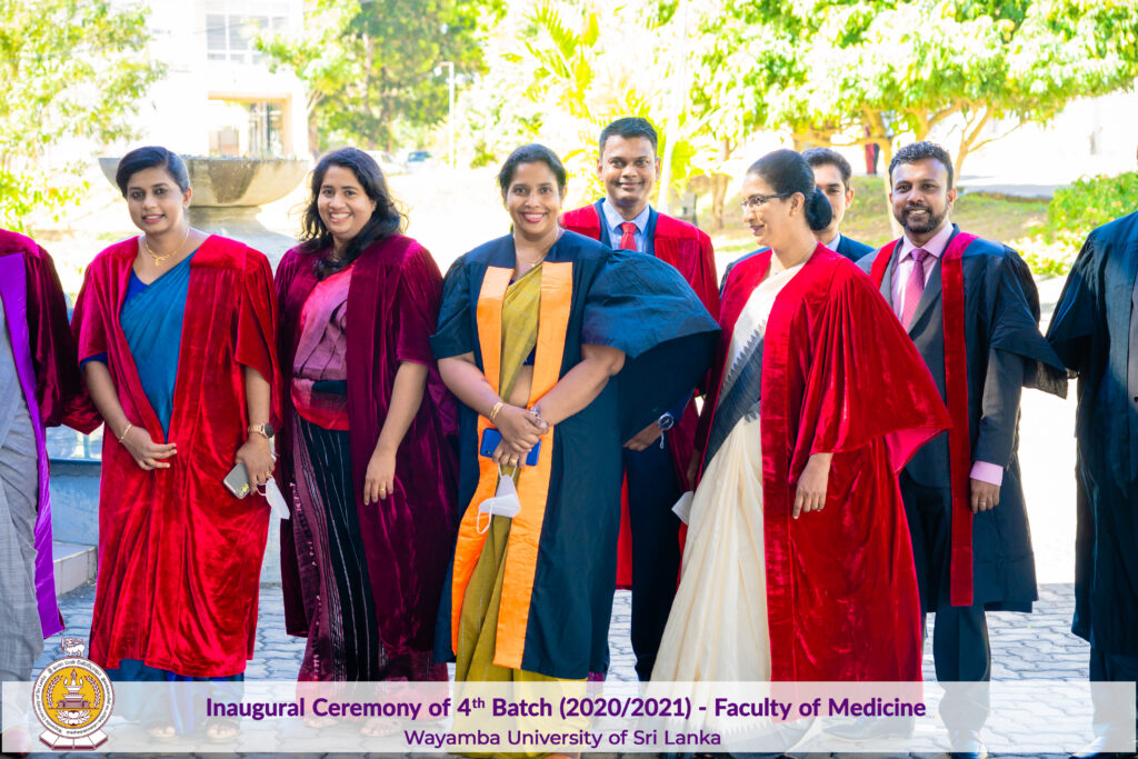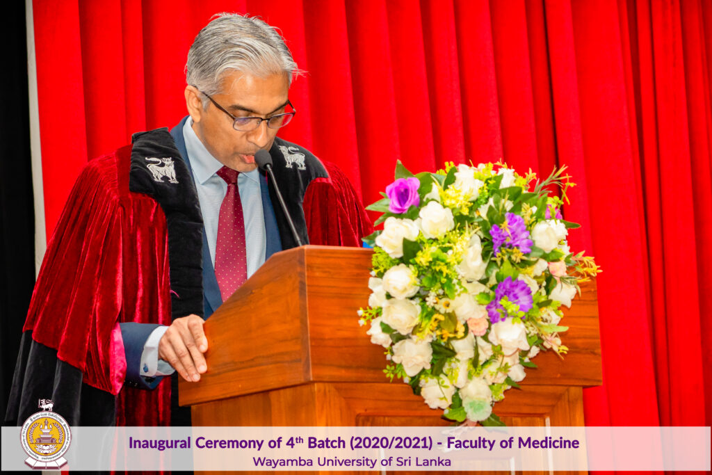 The new intake of medical students from GCE A/L 2020 were ceremonially inaugurated on the 6th of January 2022. The ceremony was graced by Dr. P.G.C.S. Bowatte, acting Vice-chancellor of Wayamba University of Sri Lanka and Dean of the Faculty of Medicine and Chief Guest Vidya Jyothi Prof. Vajira H. W. Dissanayake, President of Sri Lanka Medical Council, with the participation of Deans of the Faculties of the university, Registrar of the University, Academic Staff, Senior Assistant Registrar, new students and their parents.