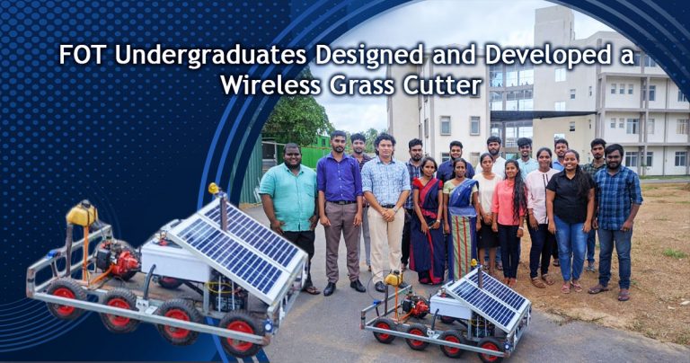 A New invention of a wireless grass cutter was introduced by the undergraduate students (Level-3) of the Department of Electrotechnology of Faculty of Technology (FOT) in Wayamba University of Sri Lanka. This has been built with additional options enable of obstacle detection and receiving live feeds to the operator’s screen from the machine.