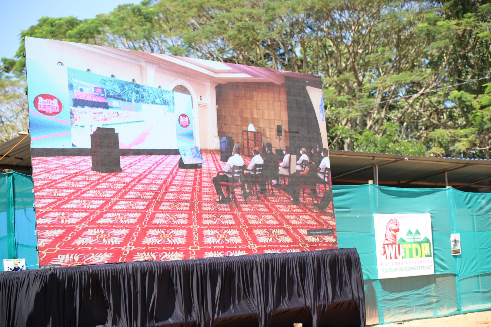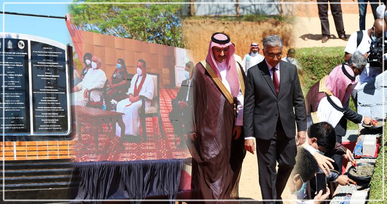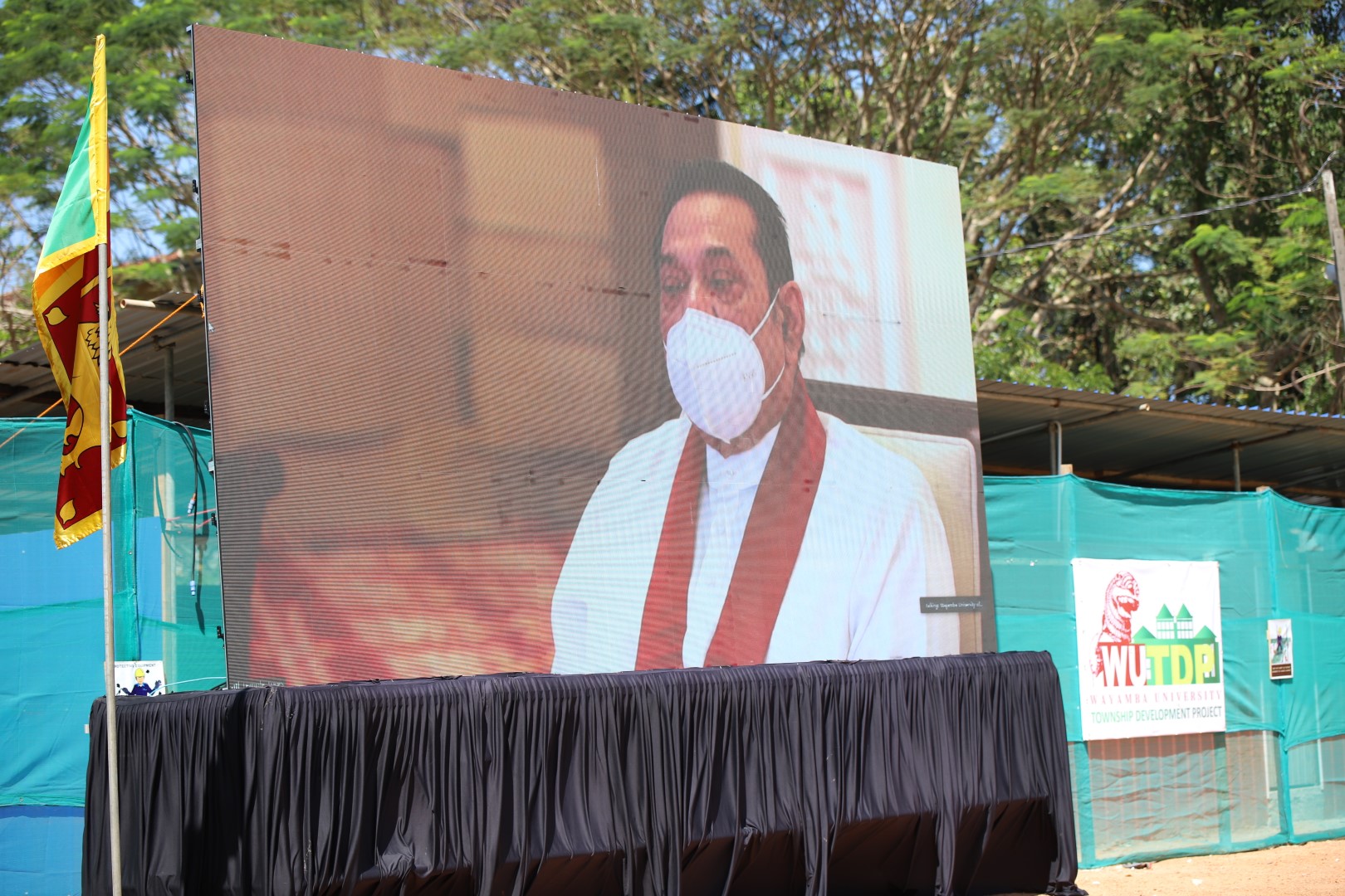 The “Wayamba University Township Development Project” of the Wayamba University of Sri Lanka was inaugurated by Hon. Prime Minister, Mahinda Rajapaksha on 27th December 2021 at a hybrid ceremony linking the prime minister’s office and the University premises. Commemorative plaque was unveiled through online technology from the Temple Trees office. The occasion was graced by Hon. Dinesh Gunawardena, Minister of Education, Hon. Johnston Fernando, Minister of Highways, and Prof. Kapila C. Perera, Secretary of Ministry of Education, Snr. Prof. Sampath Amaratunga, Chairman of the University Grants Commission, Members of Parliament and government officers. Foundation stone was laid for the new library complex by His Excellency Abdulnaser bin Hussein Al-Harti, Ambassador of the Kingdom of Saudi Arabia, His Excellency Sultan Al Marshad, CEO of the Saudi Fund for Development, Dr. Sanjeewa Bowatte, Acting Vice-Chancellor of the Wayamba University, Hon. Dr. Gunapala Ratnasekeraa and Hon Samanpriya Herath the Members of parliament, Deans, Registrar and other members.