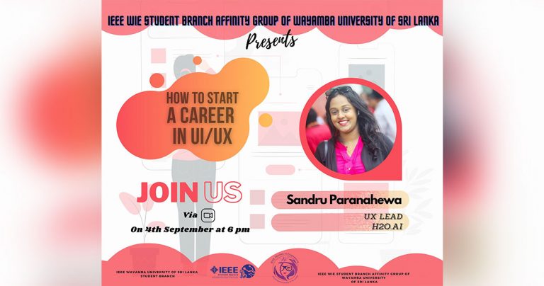 This was a beneficial webinar organized by the IEEE WIE Student Branch of Wayamba University of Sri Lanka for people who are eager to start their UI/UX careers and get the maximum out of their potential. This webinar focused on those who are willing to start the UI/UX journey in Sri Lanka. The audience consisted of undergraduates, UI/UX enthusiasts, and school leavers. This was held successfully on 4th September 2021 at 6:00 pm. This webinar was held on the Zoom platform with the participation of more than 200 participants. The main intention was to guide newbies to go higher in the UI/UX career from their first step onwards. We needed to bring in an experienced speaker to motivate the students in order to address this interesting topic.