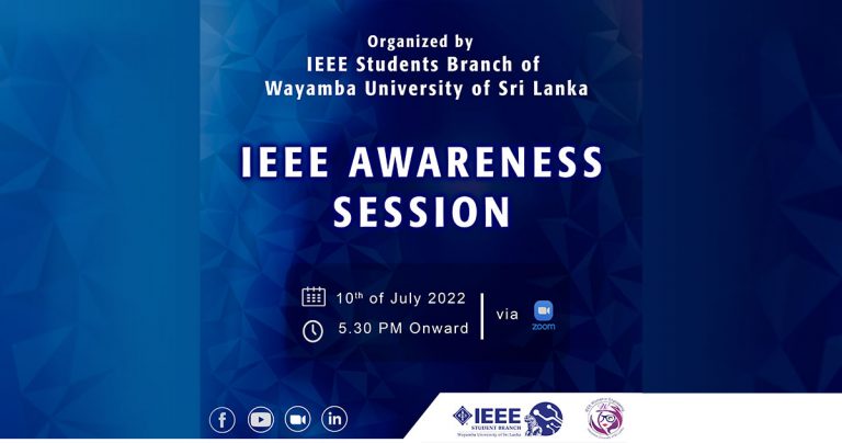 The IEEE Student Branch of Wayamba University of Sri Lanka (WUSL) will be organizing an awareness session for WUSL undergraduates on the 10th of July 2022 at 5.30 pm onwards, online.