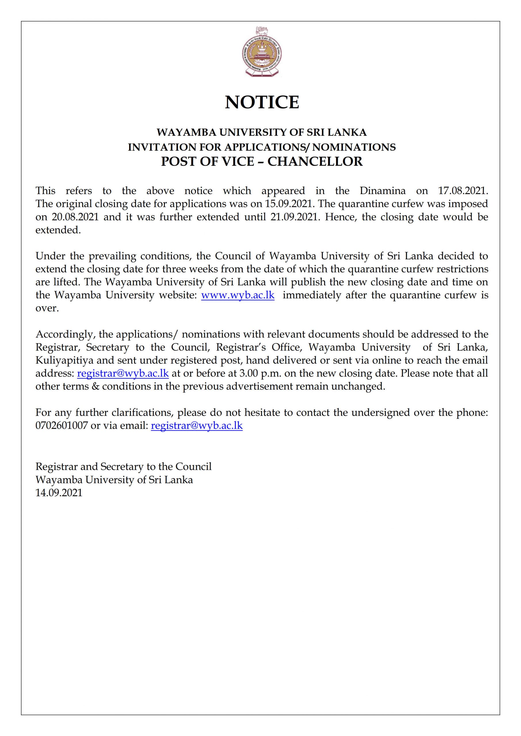 Update: INVITATION FOR APPLICATIONS/ NOMINATIONS: POST OF VICE – CHANCELLOR