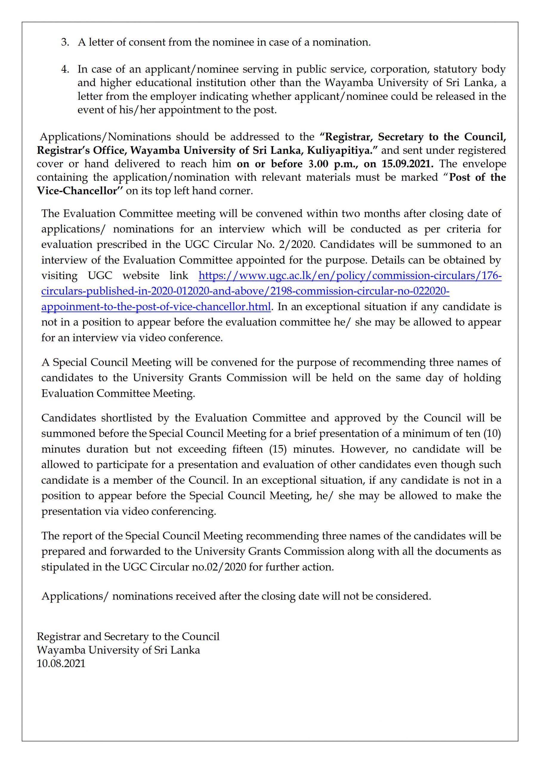 Update: INVITATION FOR APPLICATIONS/ NOMINATIONS: POST OF VICE – CHANCELLOR