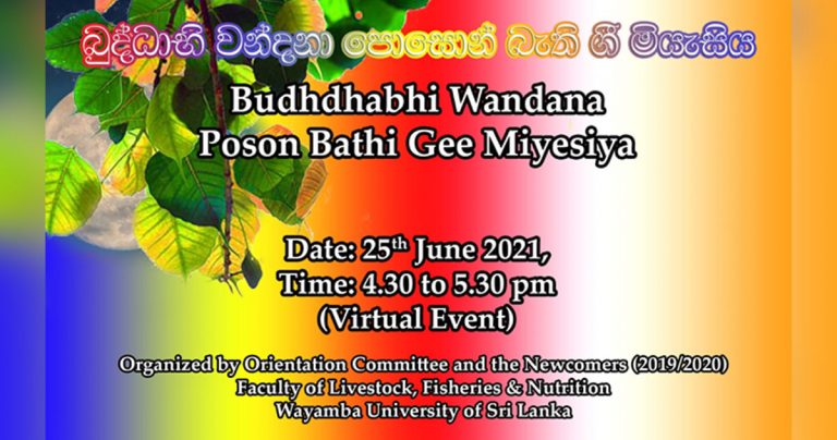 The newly intake undergraduates and the orientation committee of the Faculty of Livestock, Fisheries & Nutrition (FLFN) of Wayamba University of Sri Lanka (WUSL) have organized a virtual poson event on 25th Friday, July 2021 from 4.30 pm onwards.