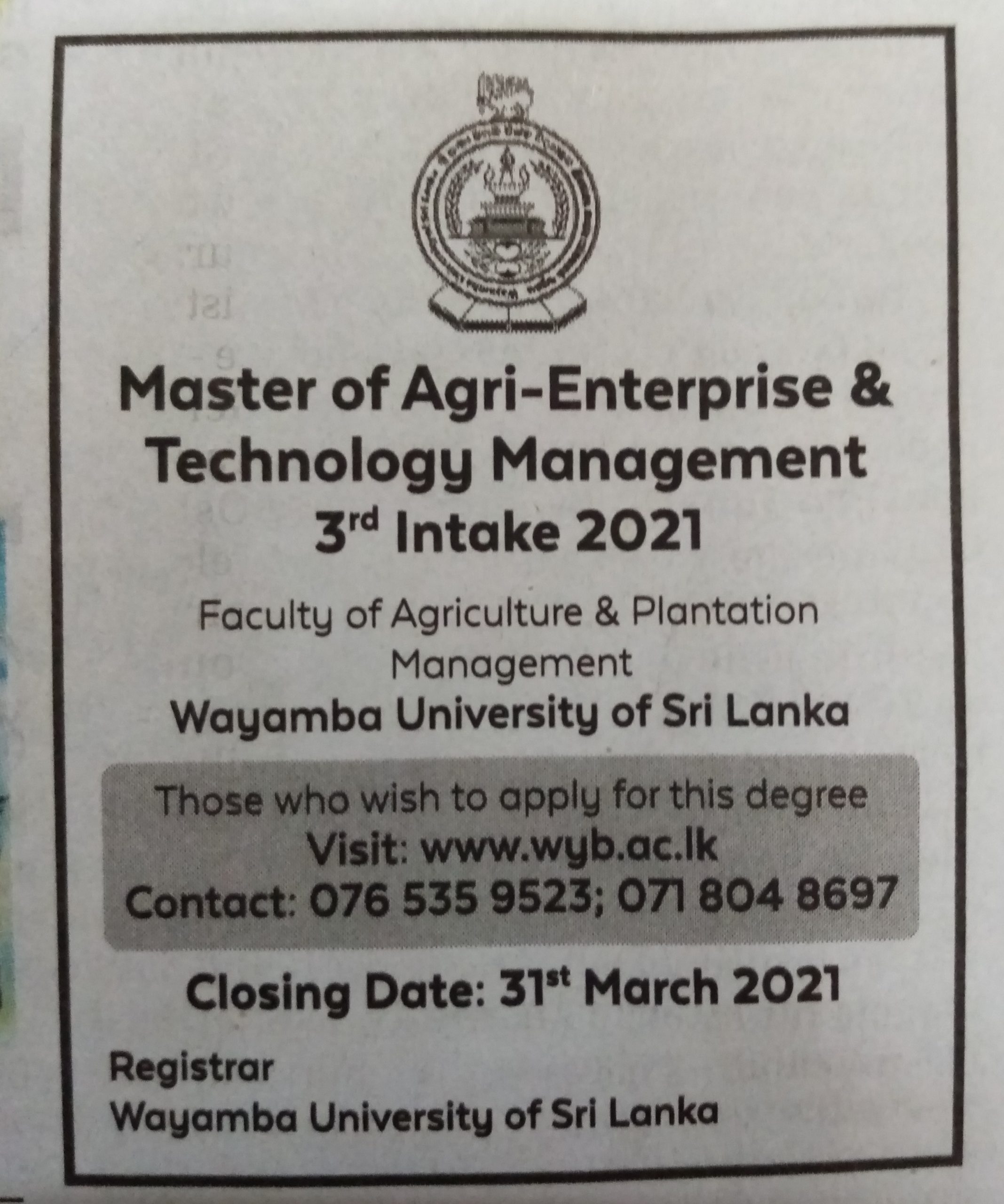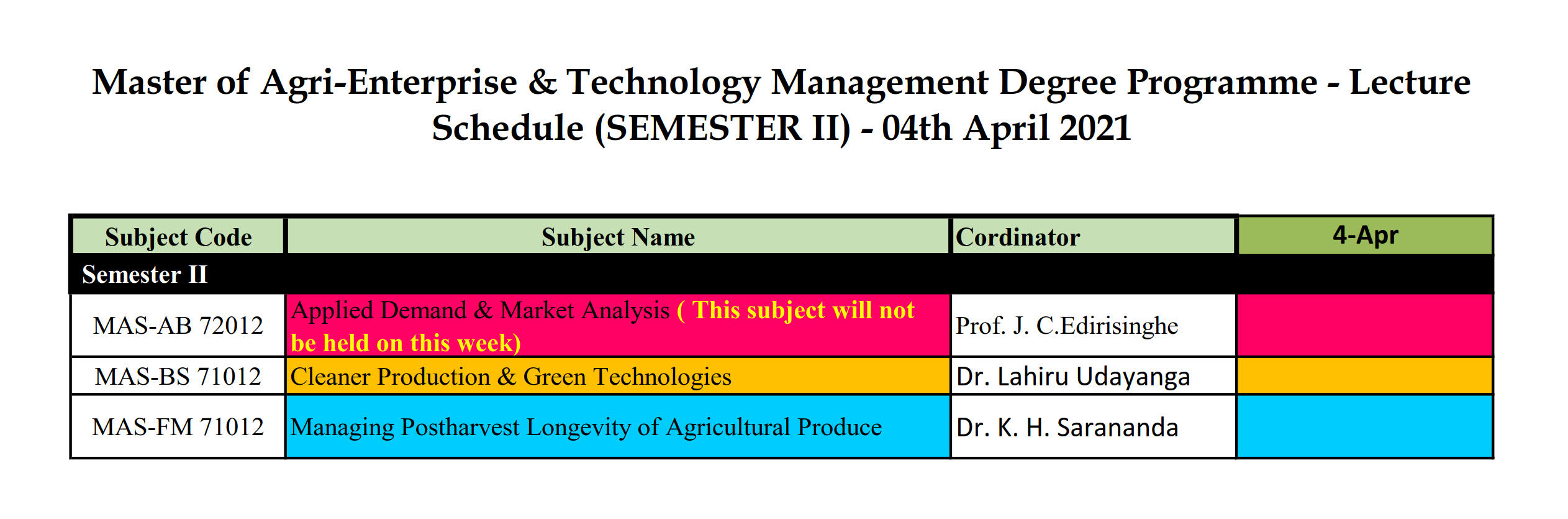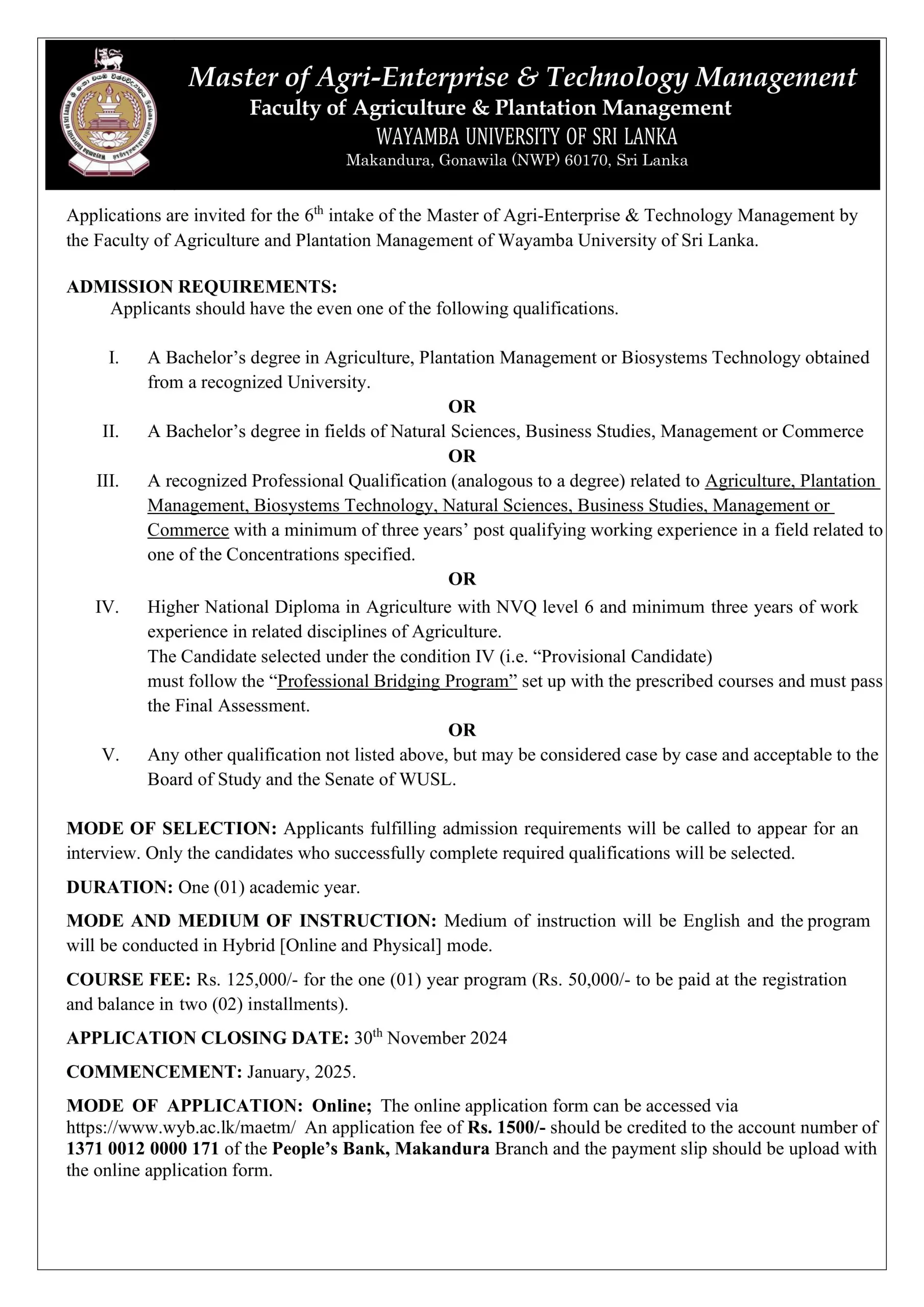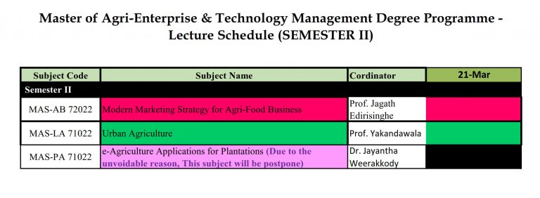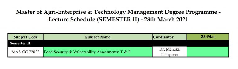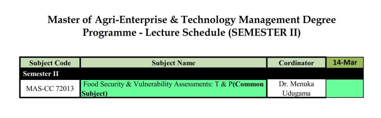The duration of the proposed ‘Master of Agri-Enterprise & Technology Management’ degree [M.(AETM)] program is one Academic Year. The ‘Academic Year’ consists of 02 Semesters of 15 weeks each and academic program is based on ‘Course Credit System’, where the students will be assessed continuously throughout the semester (i.e. formative) and end-semester evaluation (i.e. summative) will be held at the end of teaching of each course. The students will be informed about the type and schedule of continuous assessment at the beginning of each course unit.