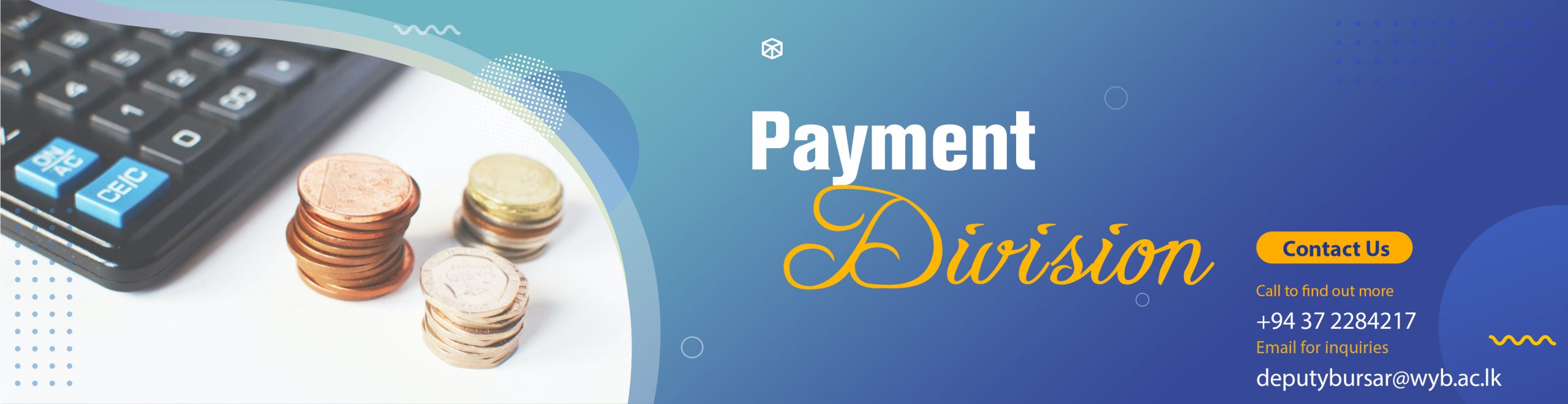 The Payment Division which is located in the Administrative Complex at Kuliyapitiya is liable for performing Recurrent and Capital payments related to the faculties, departments and divisions at Kuliyapitiya premises. This division is also responsible for managing funds by generating revenue effectively and controlling expenditure. Any money which paid to the University at Kuliyapitiya premises is also handled by this division