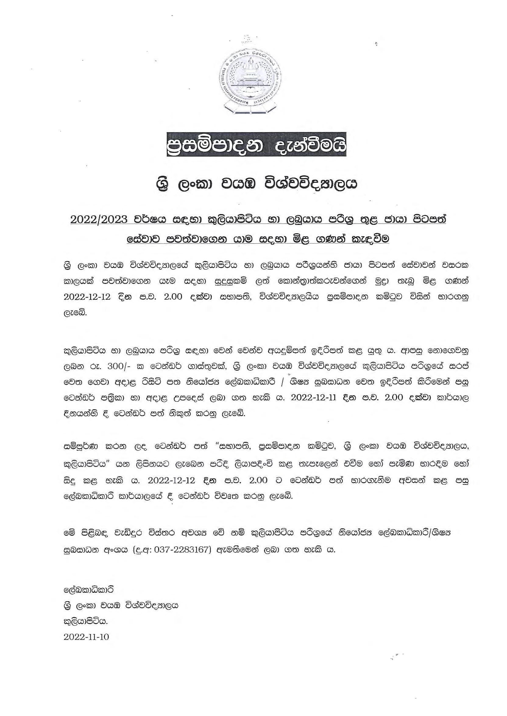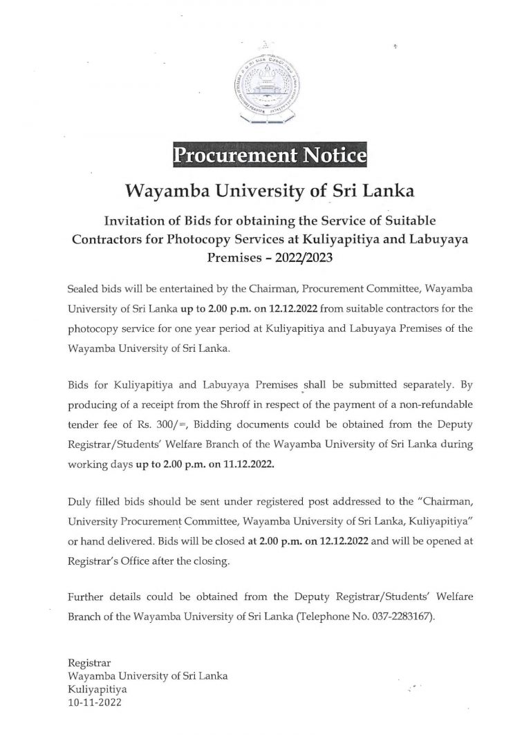 Photocopy Tender (Kuliyapitiya & Labuyaya Premises)
