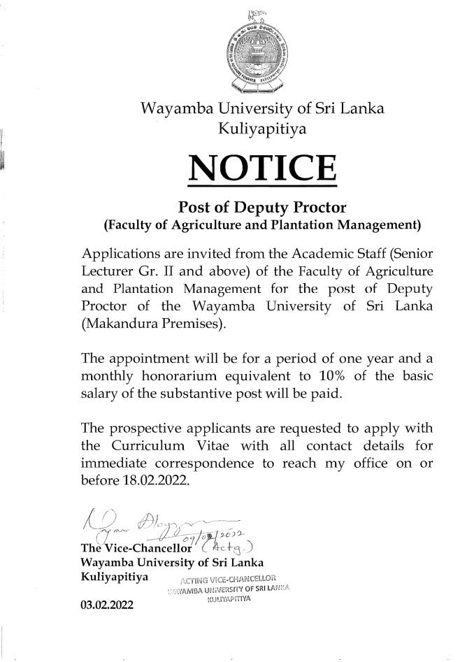 post of Deputy Proctor