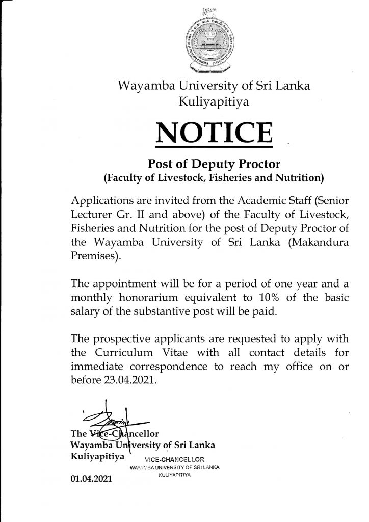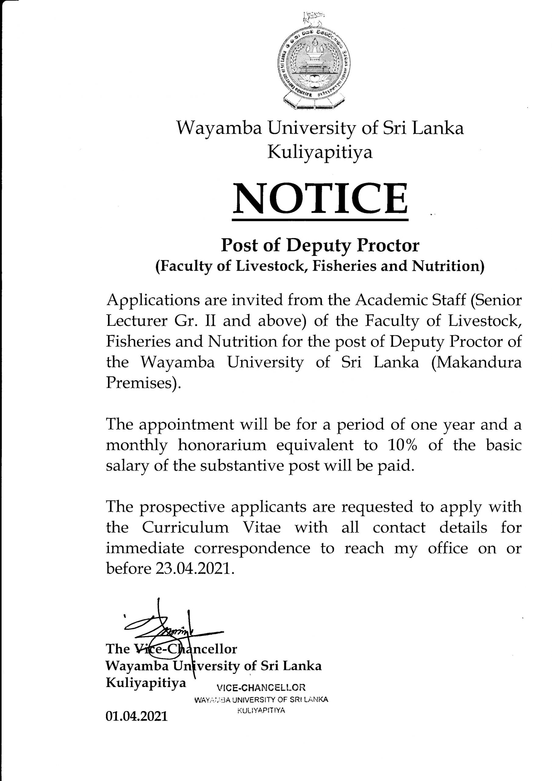 Post of Academic Sub Warden (Male/Female) (Part Time) for Labuyaya & Makandura