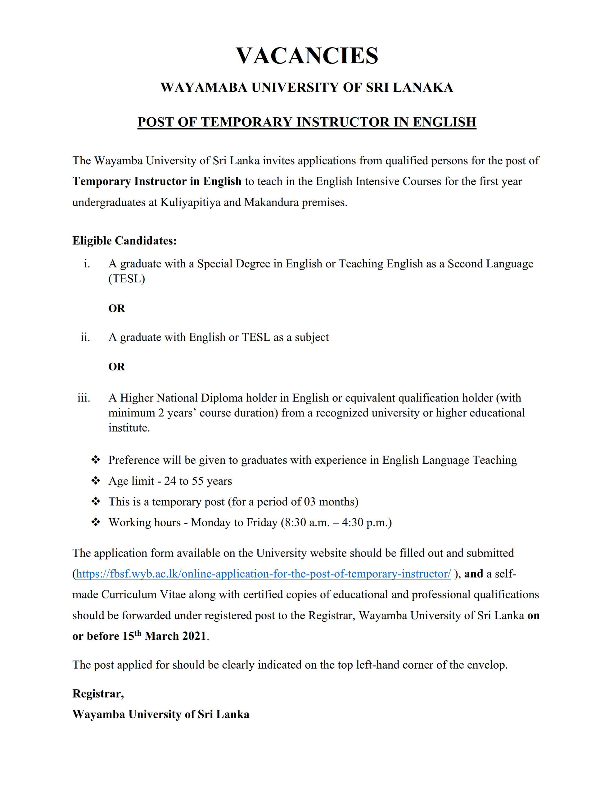 Wayamba University Teachers’ Welfare Association (WUTWAS)