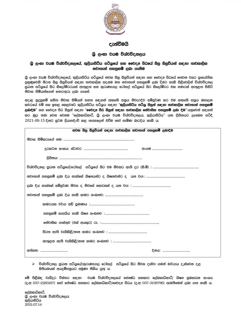 Rental facilities for students of Kuliyapitiya & Labuyaya Premises