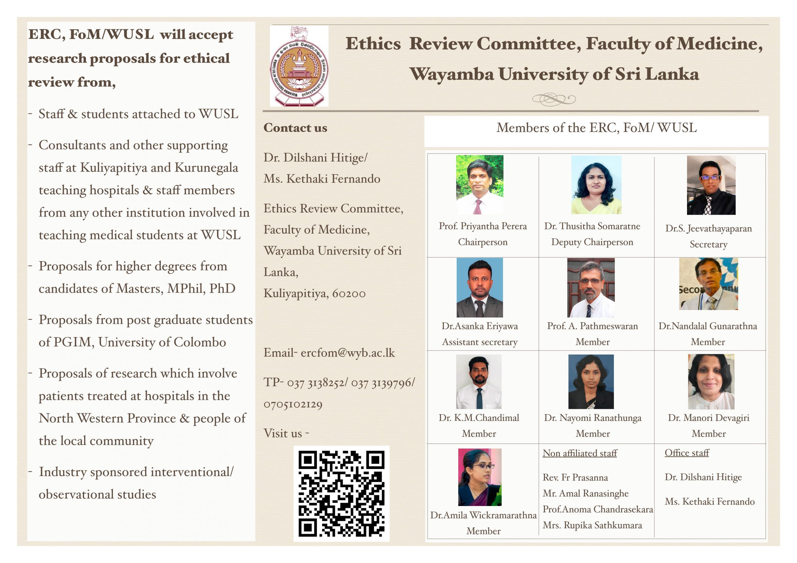 For more details about the ERC-FOM: https://fom.wyb.ac.lk/index.php/ethics-review-committee/