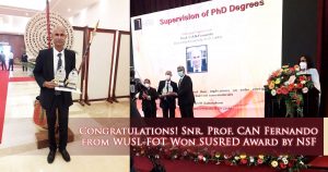Congratulations! Snr. Prof. CAN Fernando from WUSL-FOT Won SUSRED Award by NSF November 24, 2021 Senior Professor C A N Fernando from Department of Nano Science Technology, Faculty of Technology (FOT) , Wayamba University of Sri Lanka (WUSL) has won the awards for the Support Read More »