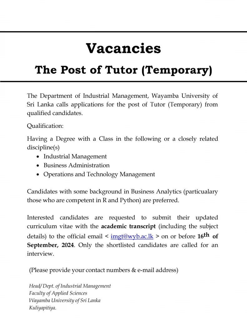 The Post of Tutor (Temporary)