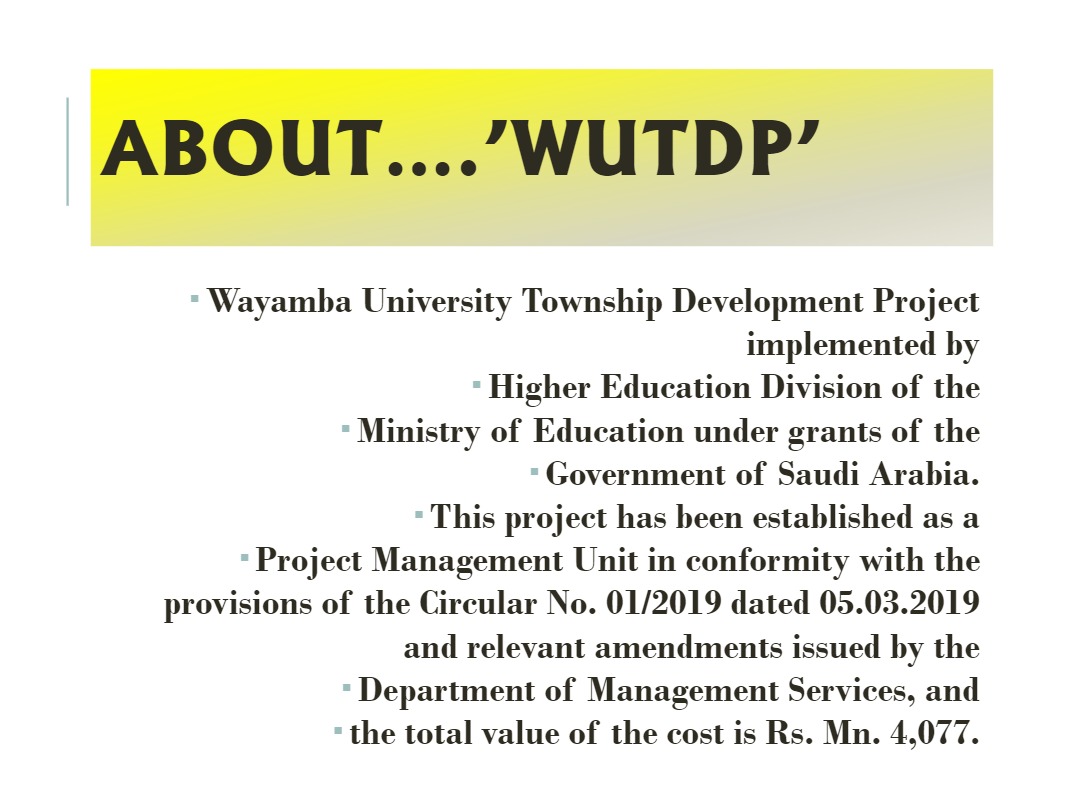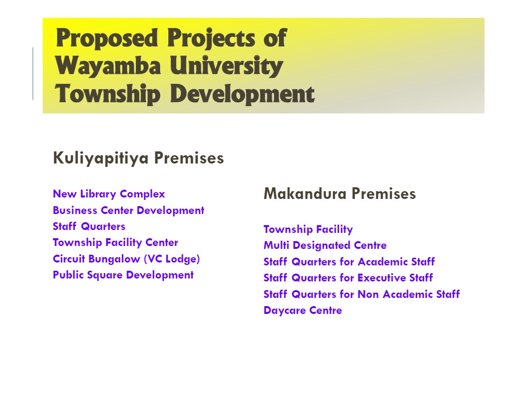 Proposed Township Development Construction Projects of Wayamba University of Sri Lanka.