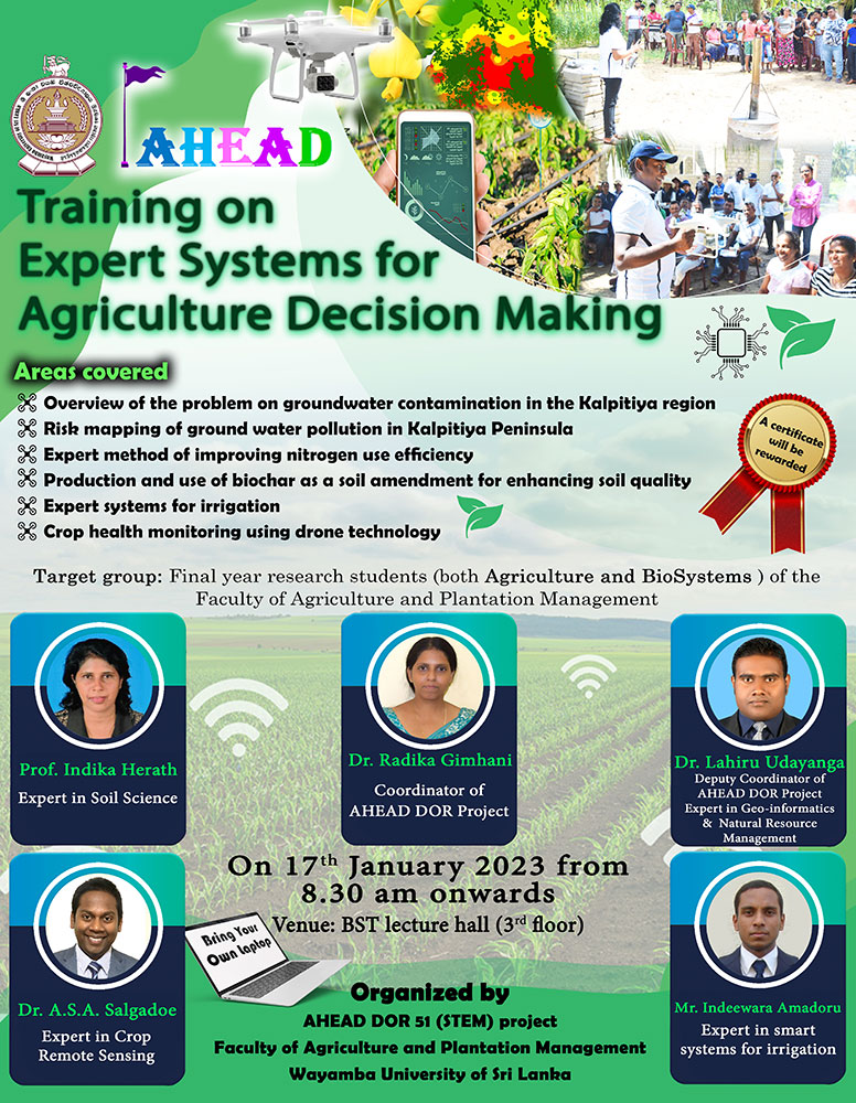 Training on Expert Systems for Agriculture Decision Making for Undergraduates by FAPM (winner of AHEAD DOR Project 51)