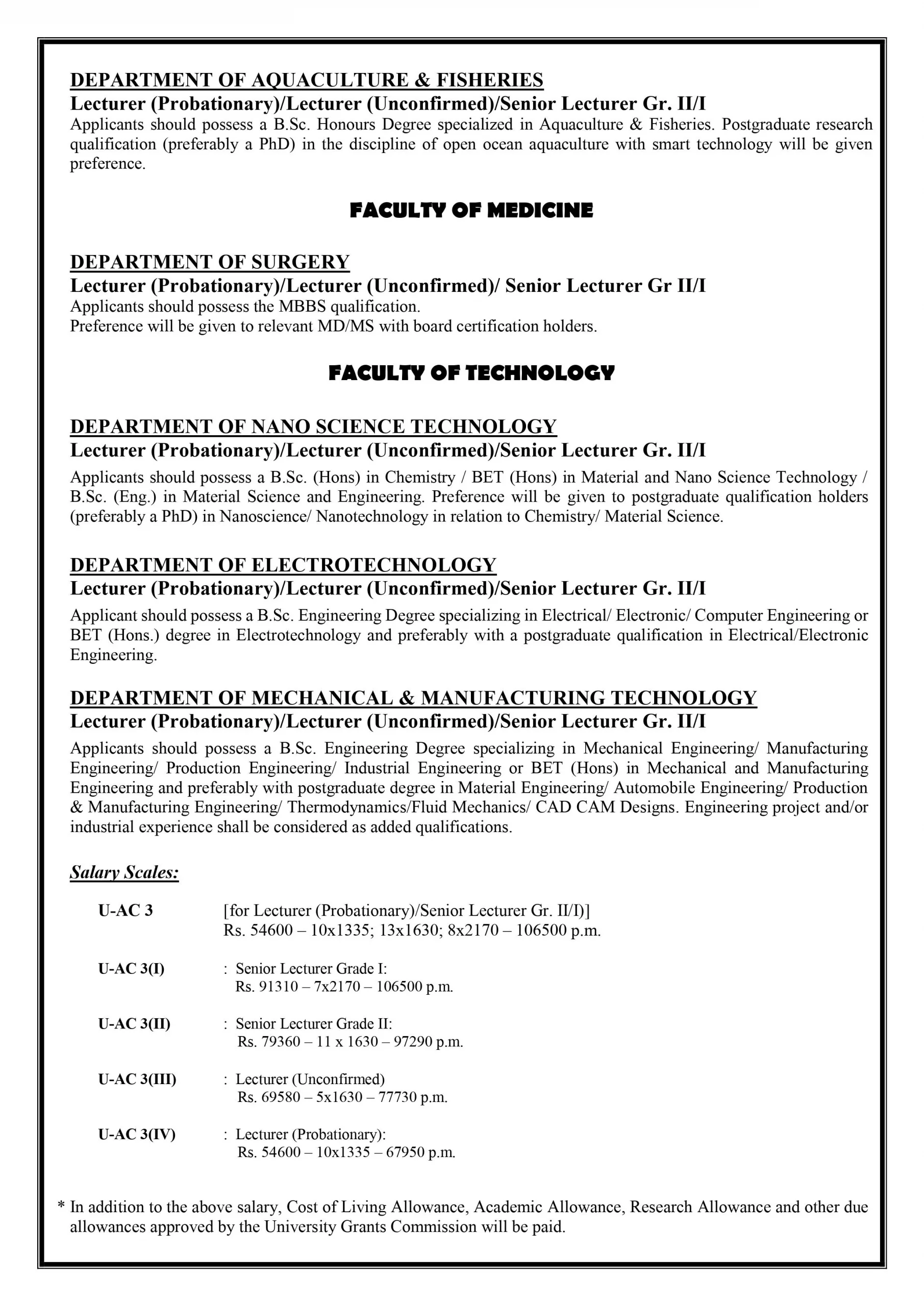 The Post of Tutor (Temporary) – Department of Industrial Management