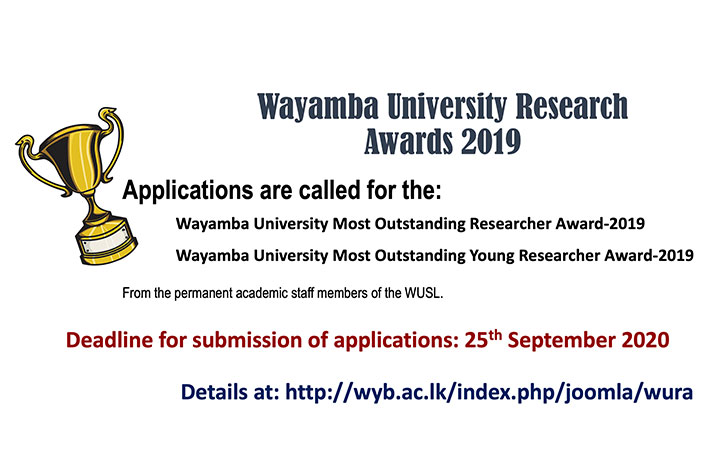 Applications are called for the Wayamba University Most Outstanding Young/Senior Researcher from the permanent academic staff members.
