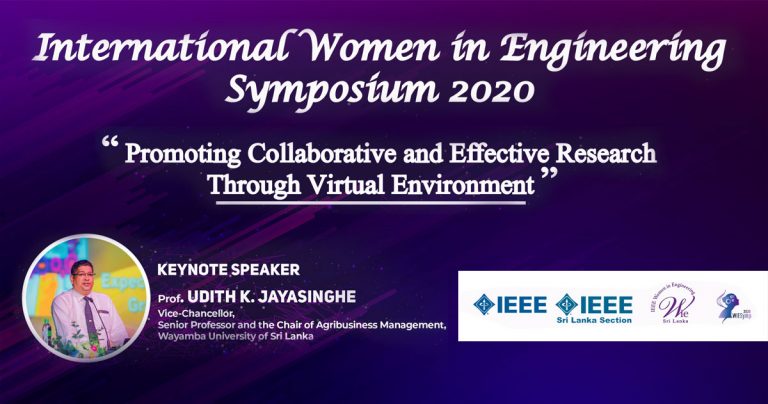 Senior Prof. Udith K. Jayasinghe, The Vice-Chancellor has been cordially invited as the Keynote Speaker for the First International Women in Engineering (WIE) Symposium, 2020. The Vice-Chancellor will be speaking on “Promoting Collaborative and Effective Research Through Virtual Environment”