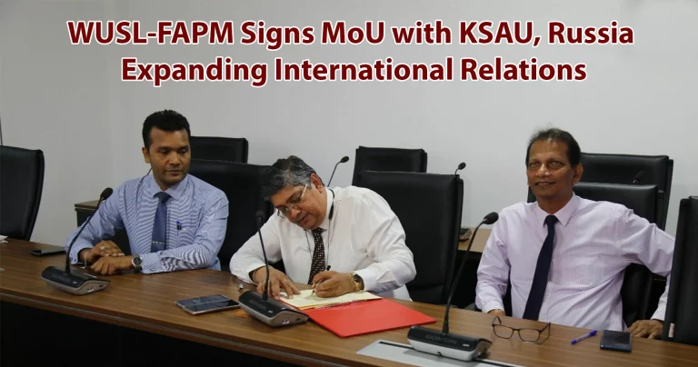 The Wayamba University of Sri Lanka (WUSL) ceremonially signed a MoU with Federal State – Funded Educational Institution of Higher Education, Kursk State Agrarian University, Russia on 22nd June 2023 aiming academic and scientific co-operation, knowledge and expertise exchange in the fields of undergraduate and postgraduate education and research between the Faculty of Agriculture & Plantation Management (FAPM) and Kursk State Agrarian University (KSAU).