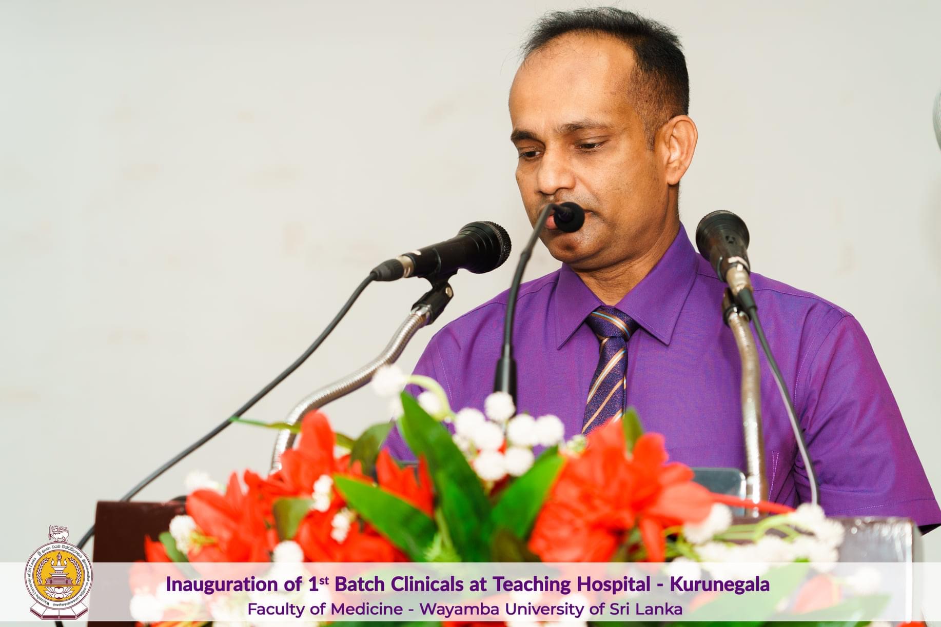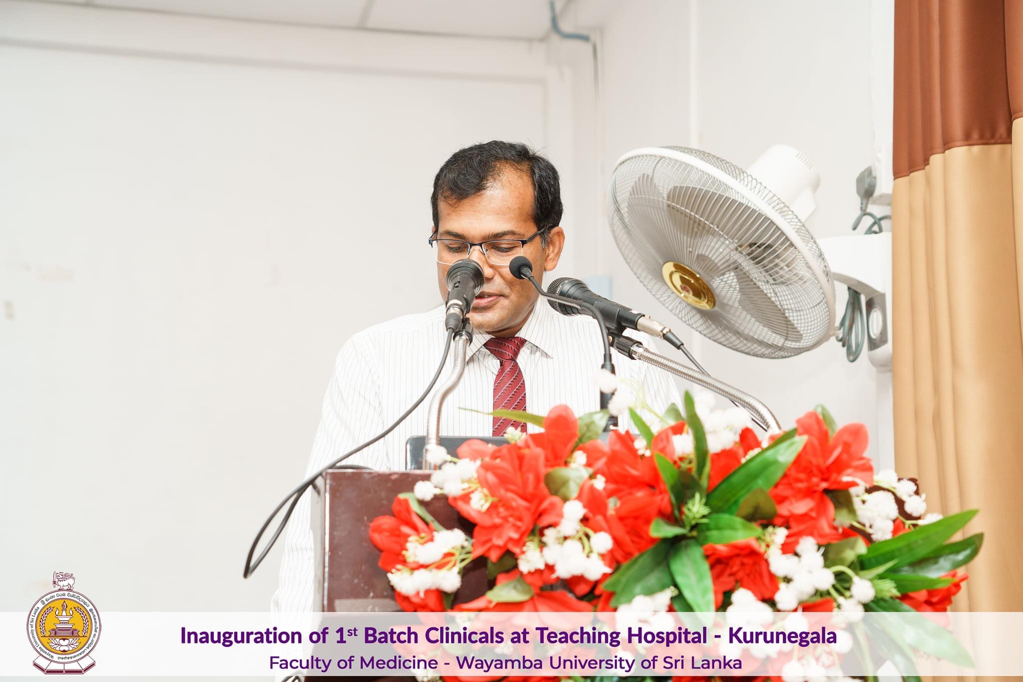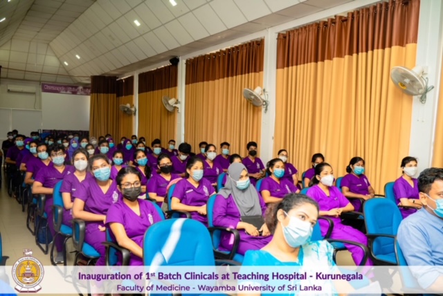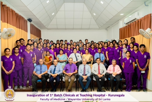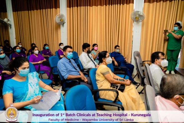 The Faculty of Medicine in Wayamba University of Sri Lanka (WUSL) marked a historical milestone of sending out the first batch of medical students for their sub-specialty appointments at Teaching Hospital, Kurunegala. The inauguration took place on 21st February 2022 at Kurunegala with Dr. Chandana Kedangamuwa, Director of the Teaching Hospital Kurunegala, Dr. Sanjeewa Bowatte, Acting Vice-chancellor of WUSL and the Dean of FOM, the consultant staff and the staff of the para-clinical and clinical Departments of FOM gracing the occasion.