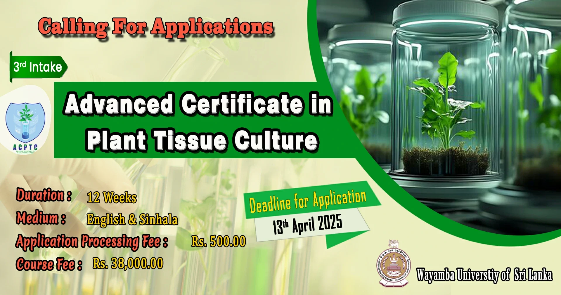 • Diploma in Agriculture and Plantation Management – 7th Intake