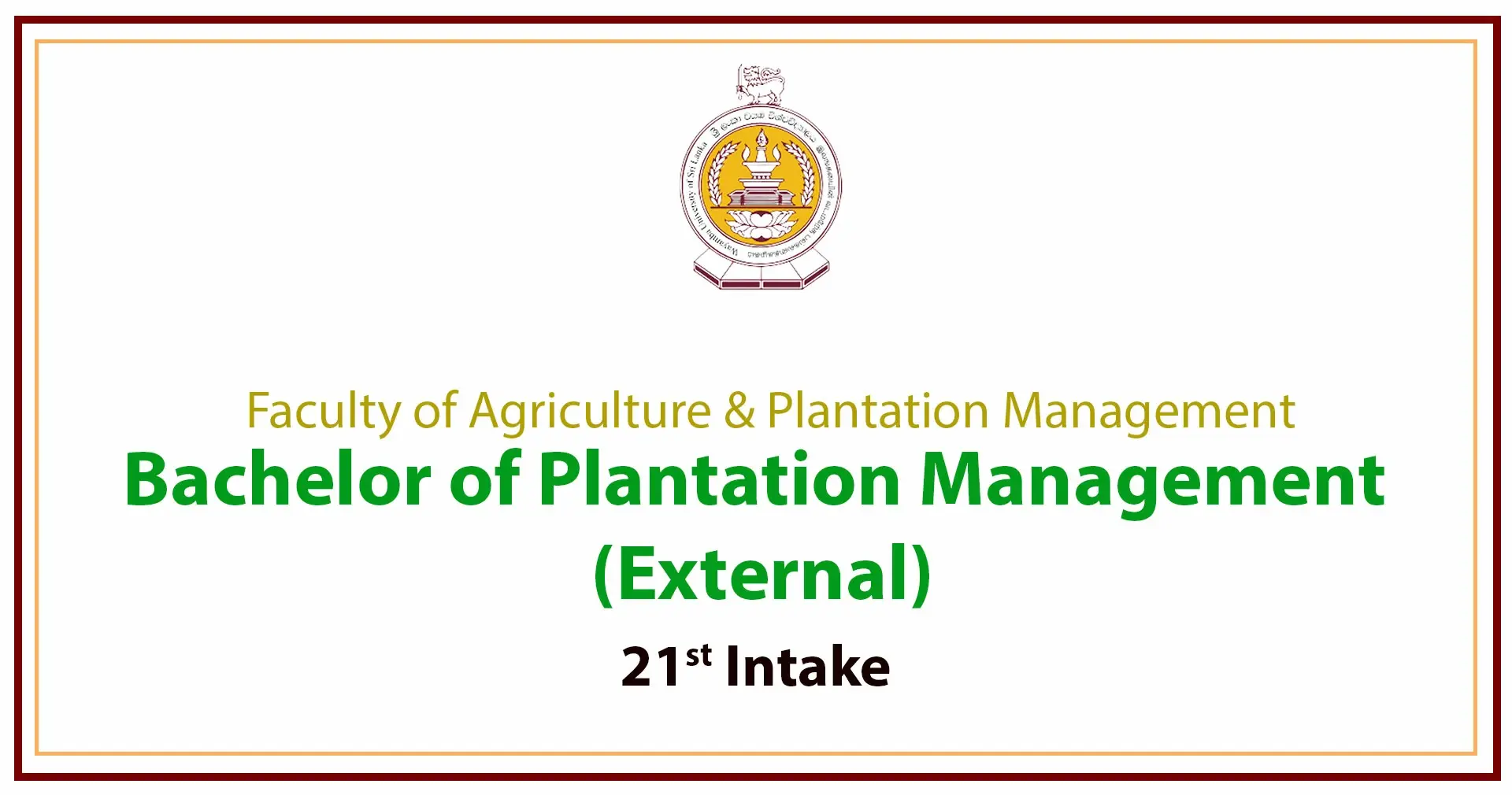 • Bachelor of Plantation Management (External) – 21st Intake
