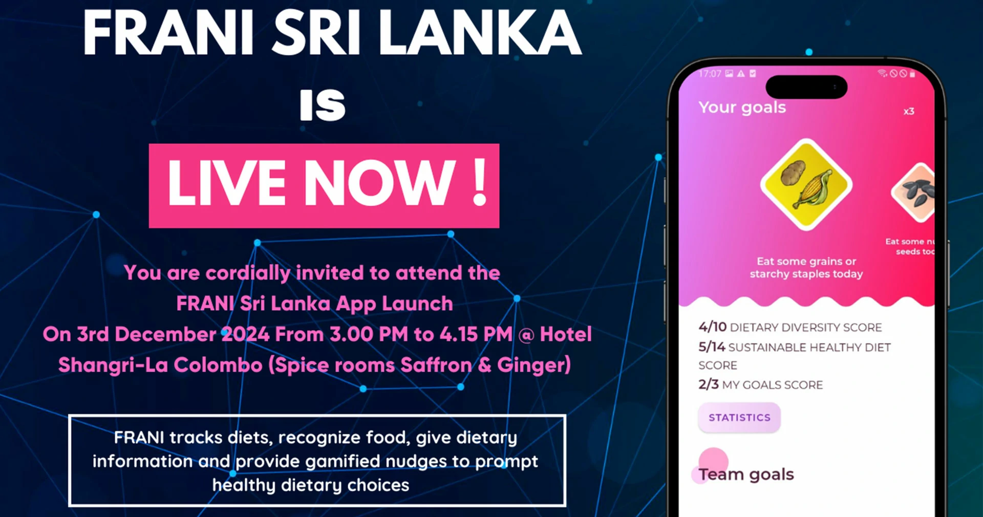 FRANI Sri Lanka Is Live Now! You are cordially invited to the launching/ dissemination of FRANI (Food Recognition Assistance and Nudging Insights), a new artificial intelligence AI-assisted mobile phone application developed under the Nudging for Good Read More » November 21, 2024