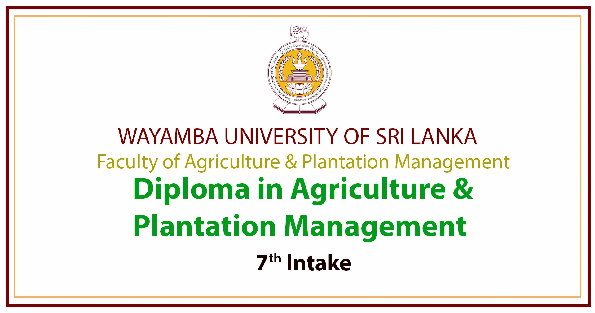 Diploma in Agriculture and Plantation Management – 7th Intake Click here to see more Read More » September 1, 2025
