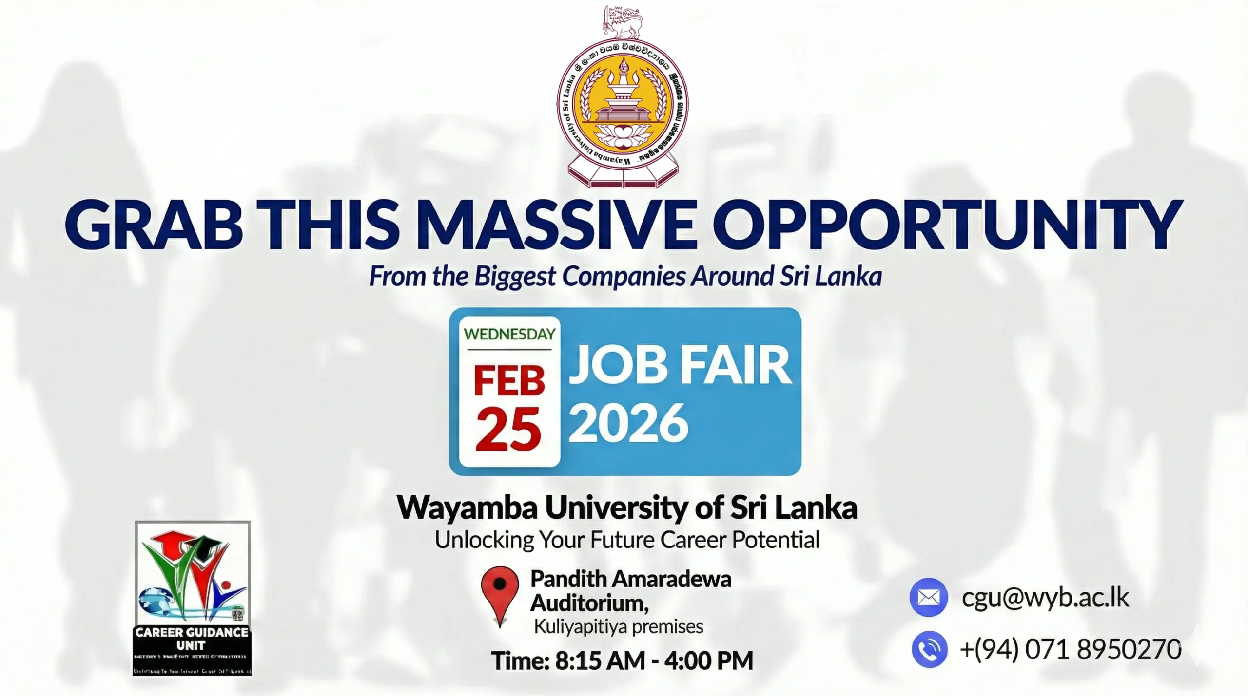 Wayamba University of Sri Lanka proudly invites students and graduates to the Wayamba University Job Fair 2026, a major career networking event that brings together leading companies and organizations from